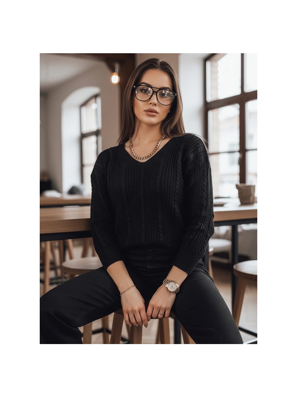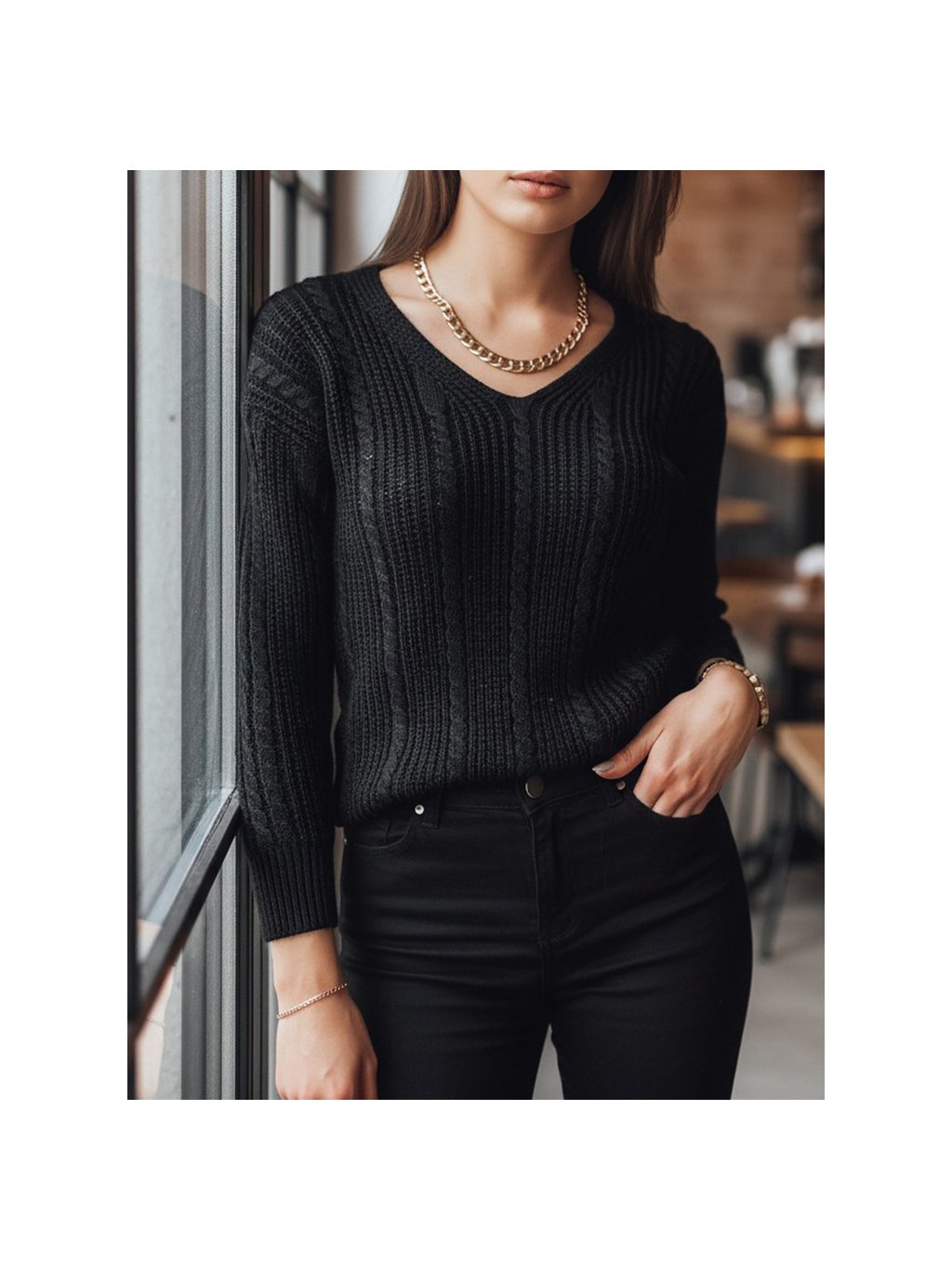 Čierny elegantný sveter WELLMA