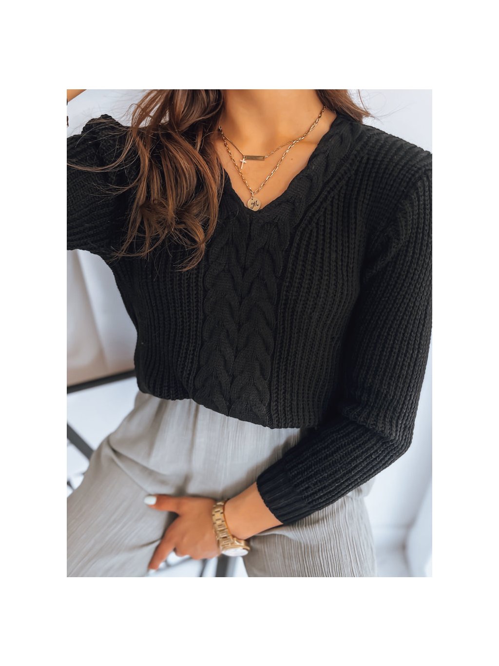 Čierny sveter CANDIS s pleteným vzorom