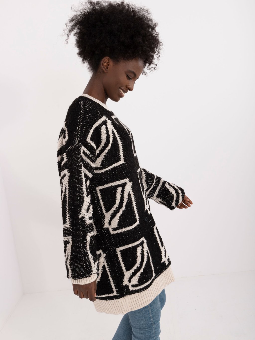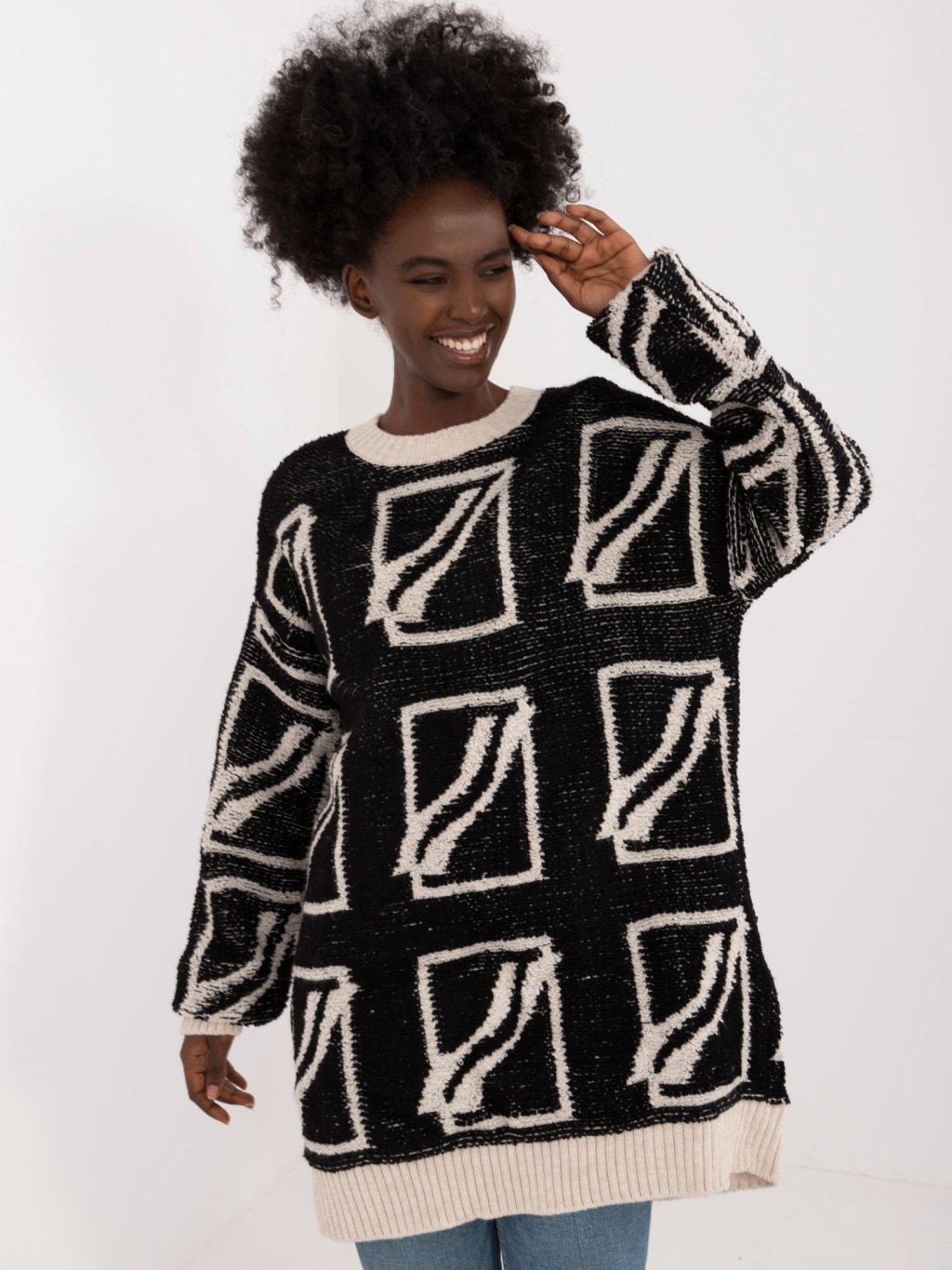 Čierny voľný sveter so vzormi
