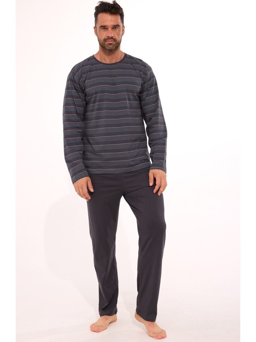 Cornette Tmavosivé pánske dlhé pyžamo s pruhovým tričkom