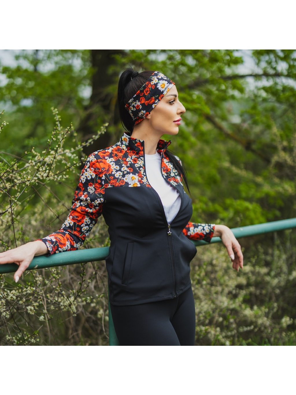 Dámska čierna funkčná čelenka s makmi