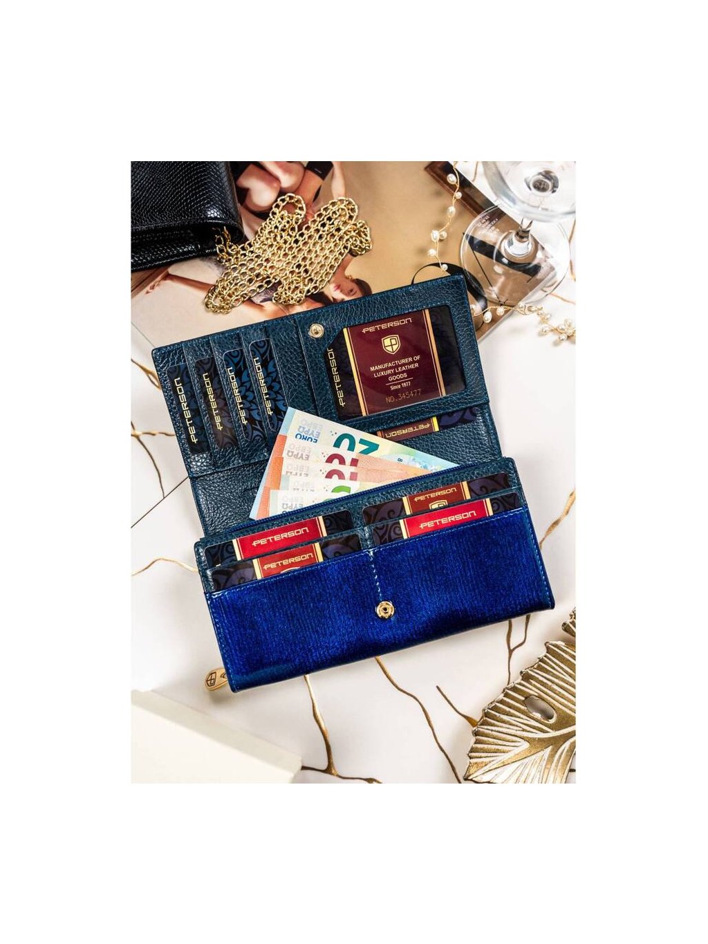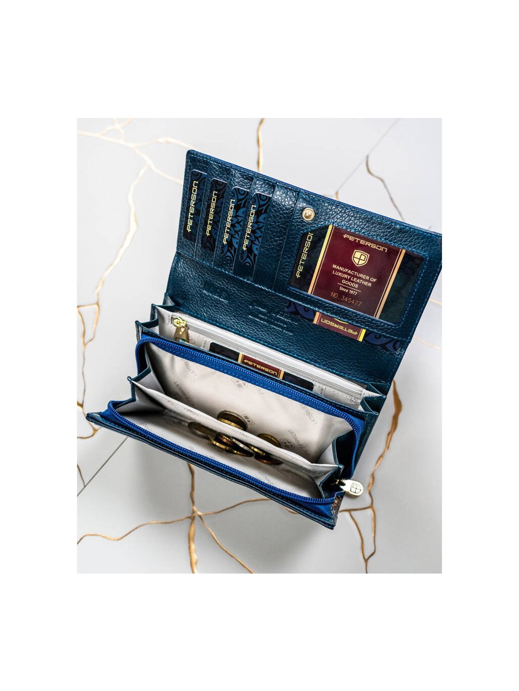 Dámska modrá kožená peňaženka Peterson Y742