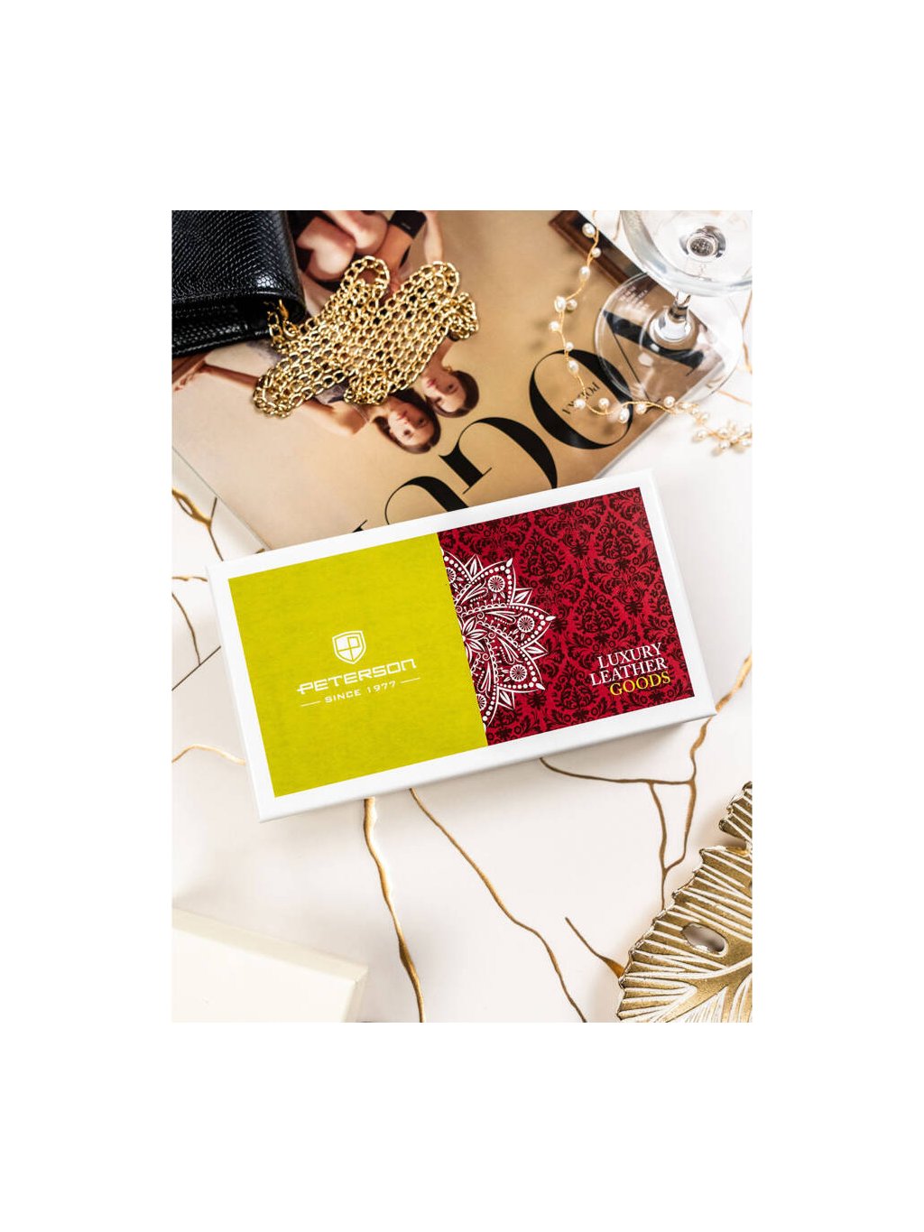 - peňaženka je zabalená v štýlovej krabičke