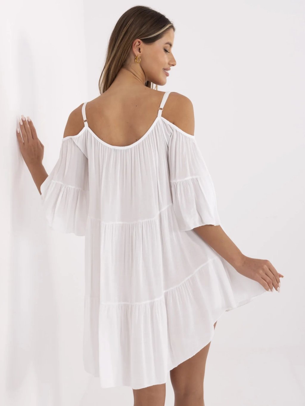 • Modelka na obrázkoch je vysoká 175 cm, obvod cez prsia 84 cm, obvodu pása 65 cm a boky 92 cm.