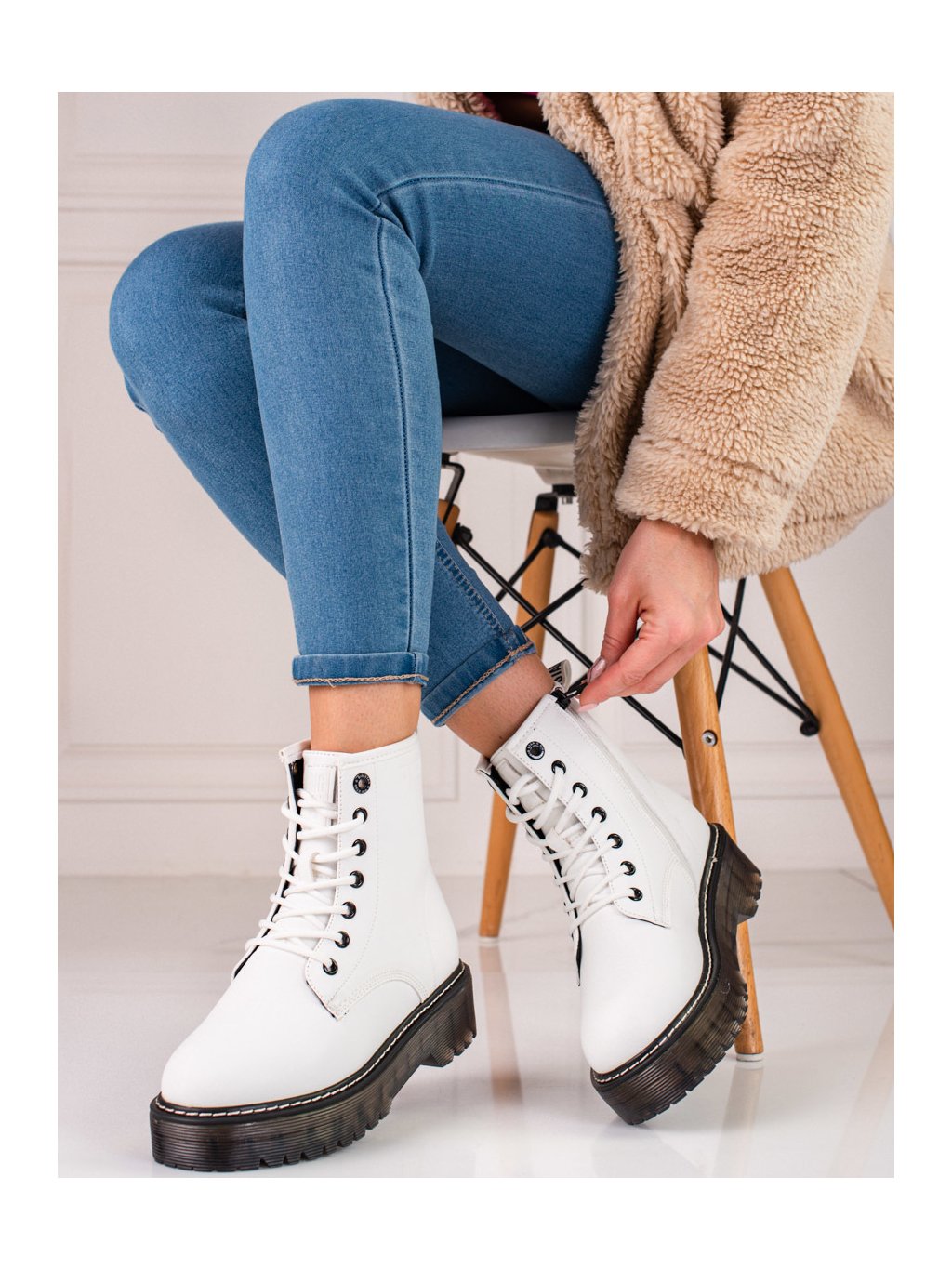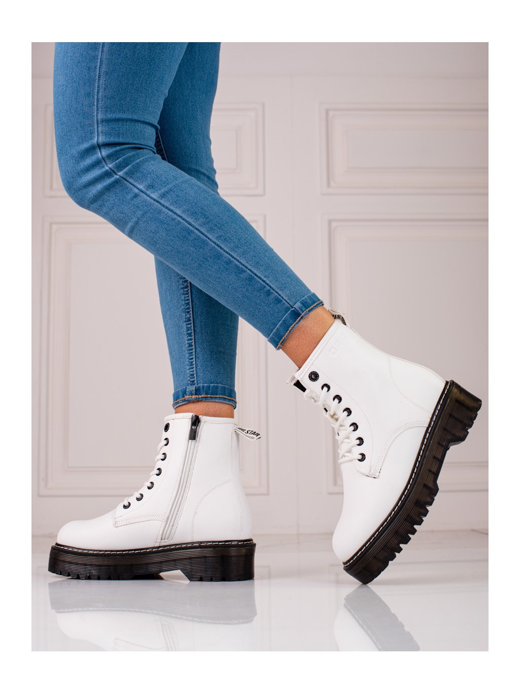 Dámske biele šnurovacie členkové topánky BIG STAR