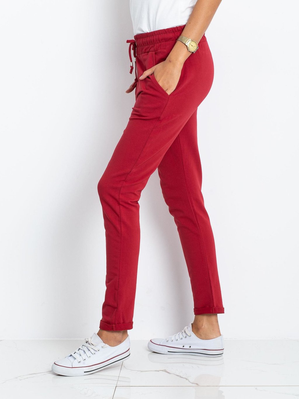 Dámske burgundy tepláky s vyhrnutými nohavicami
