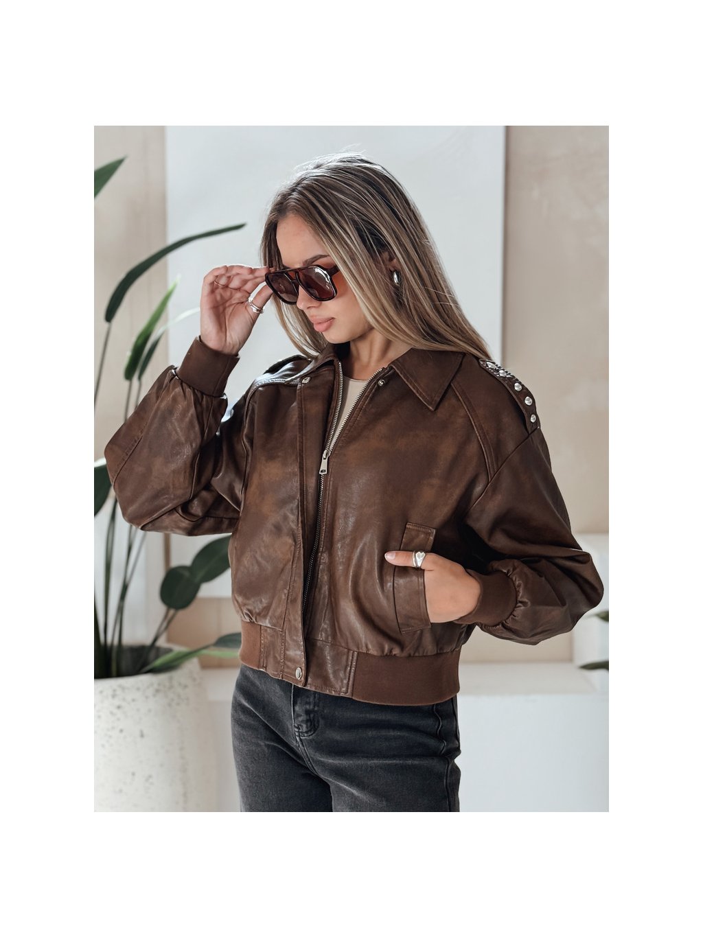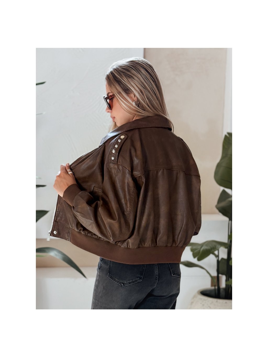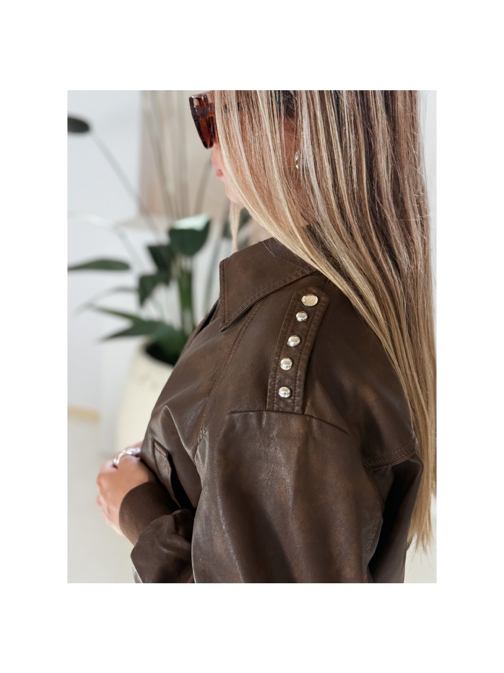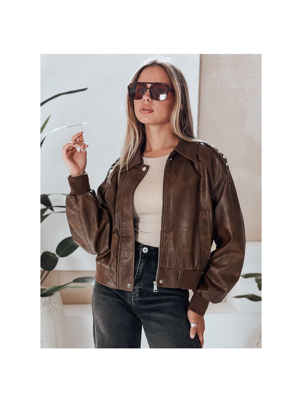Dámska hnedá koženková bombera