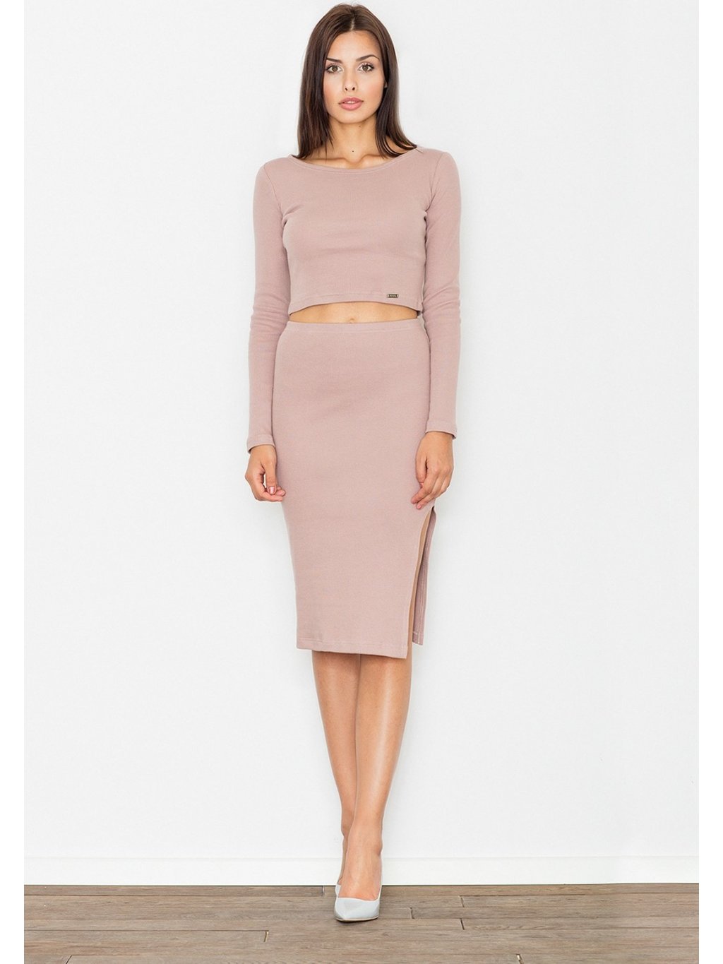 Dámsky set blúzka so sukňou s rozpárkom M484 Dark pink