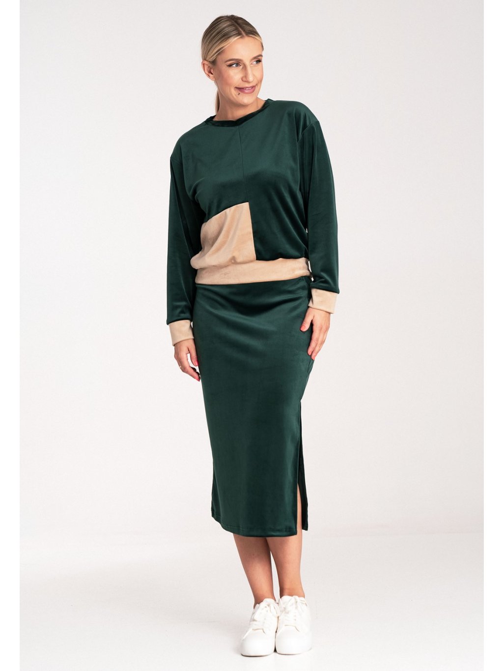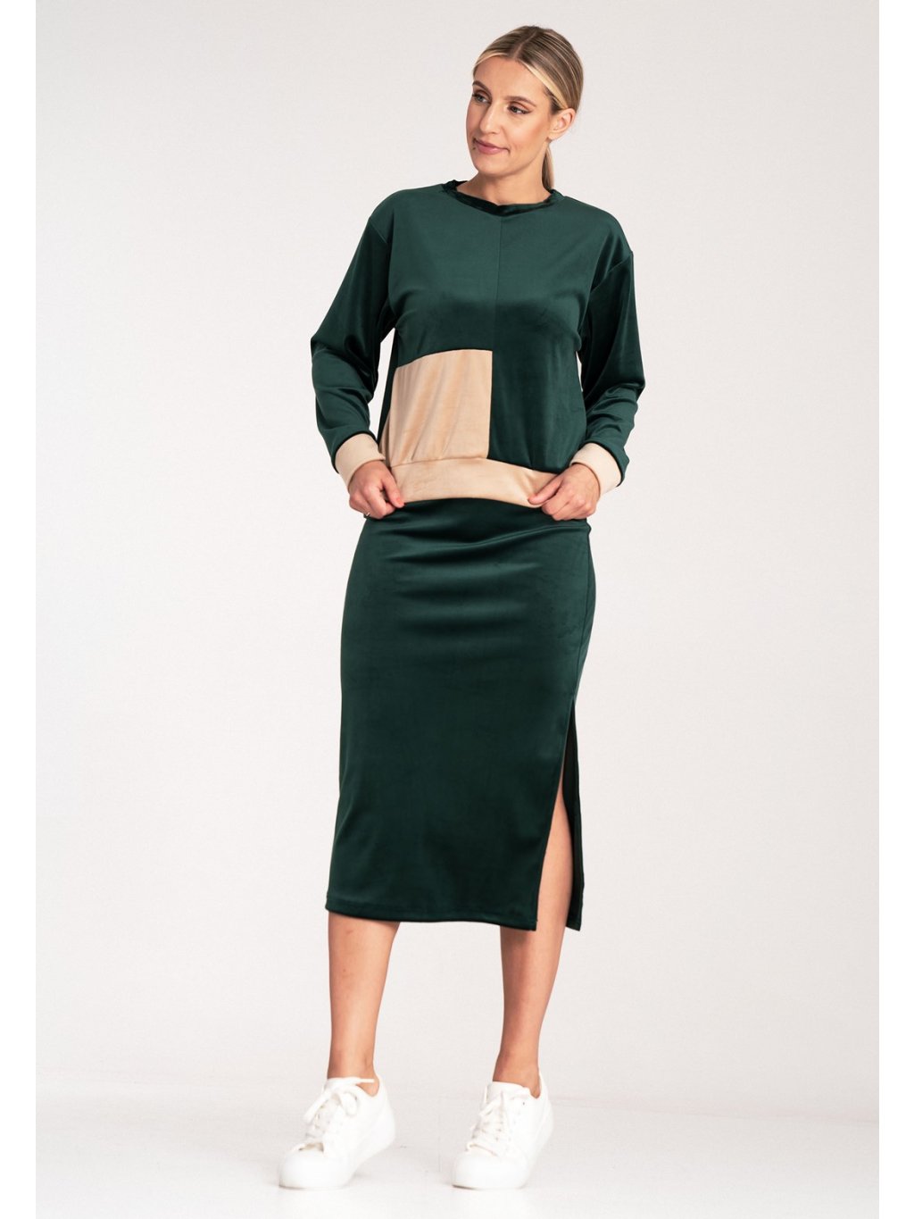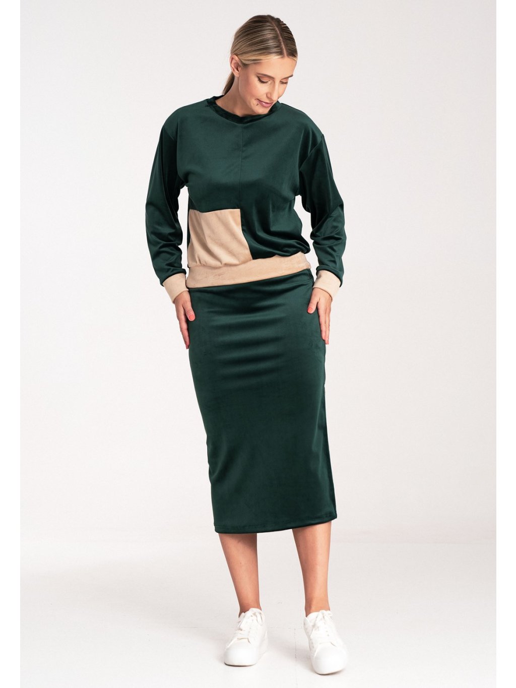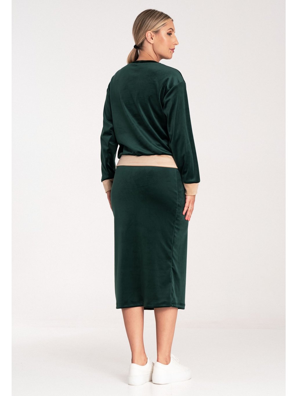 Dámsky tmavozelený velúrový set mikiny a sukne