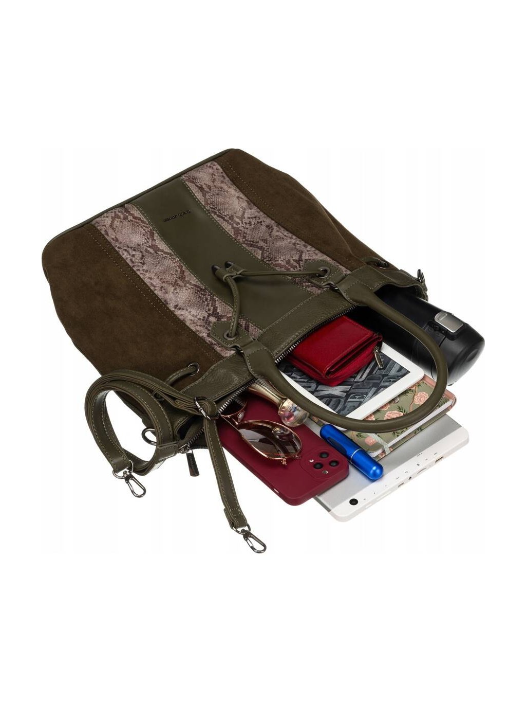 David Jones tmavá khaki shopper kabelka so zvieracím vzorom