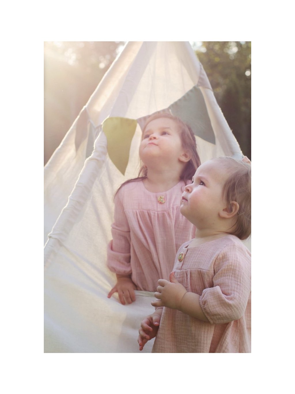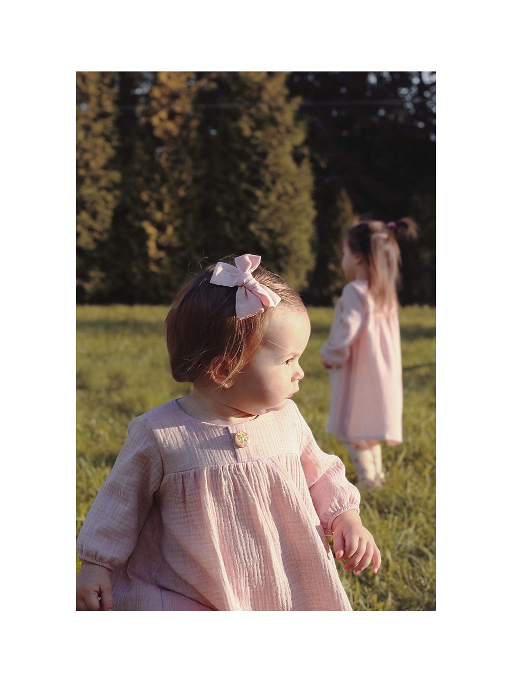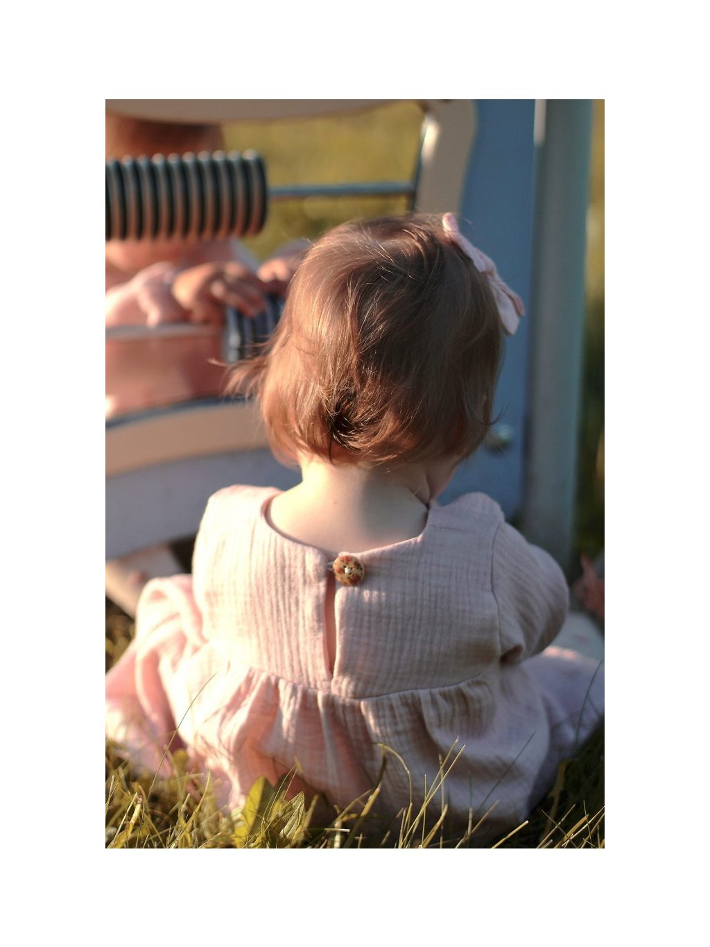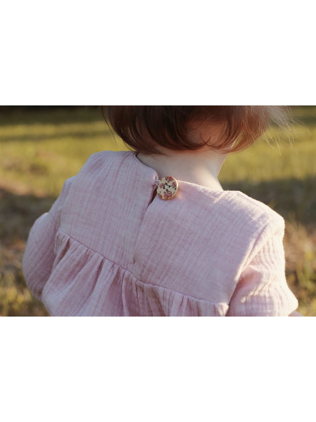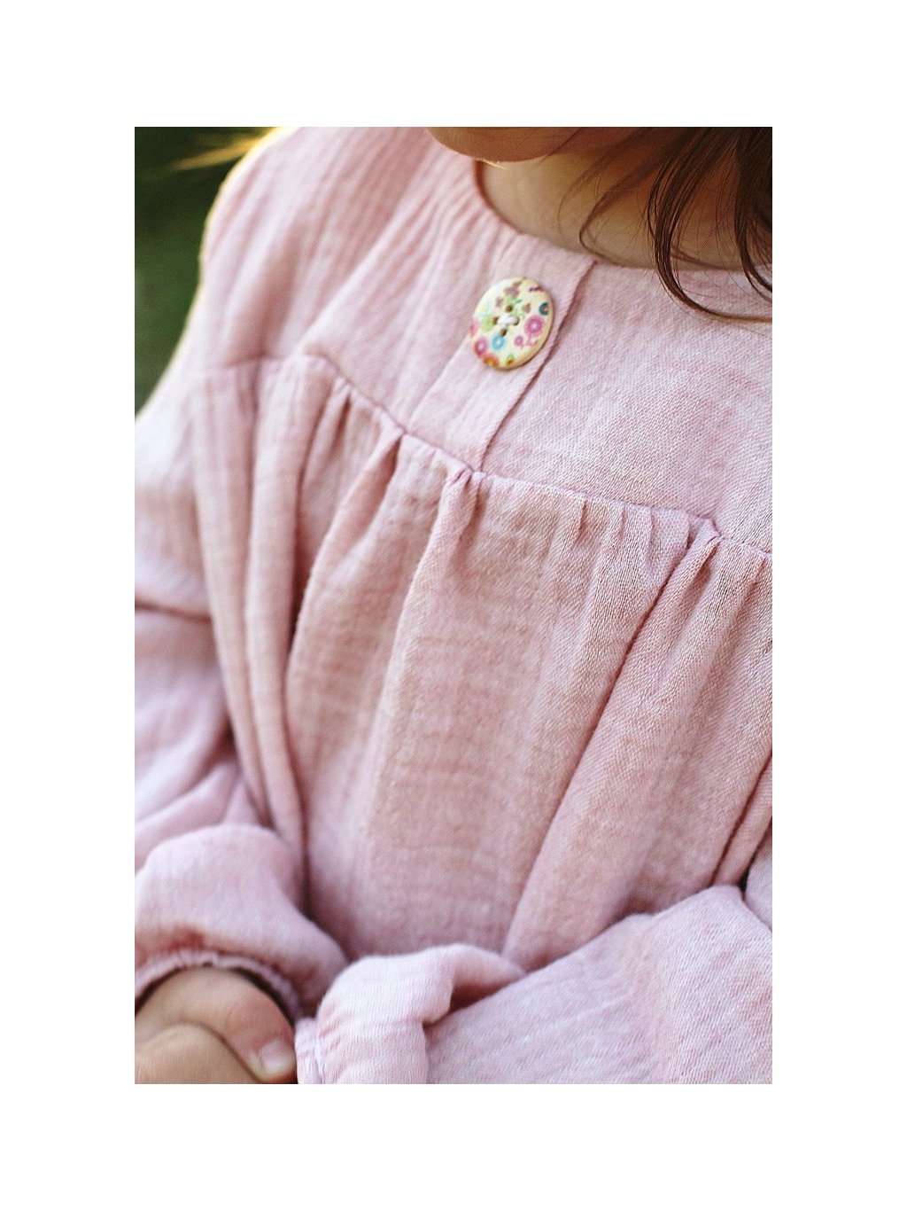 Dievčenské ružové mušelínové šaty EMILY s ozdobným gombíkom