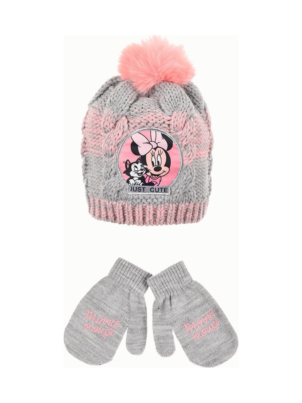 Disney Minnie Mouse sivo-ružová zimná sada čiapky a rukavíc