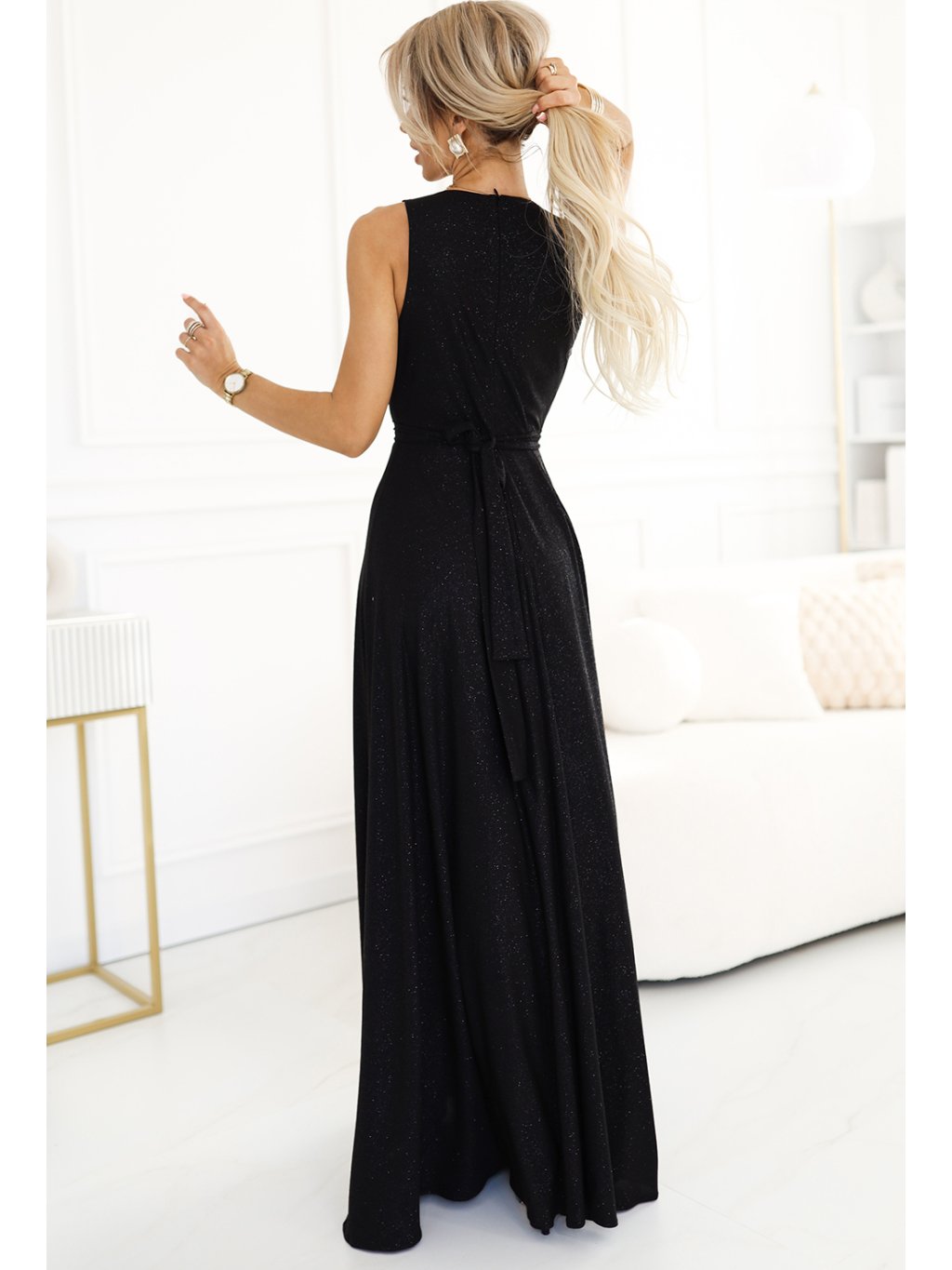 Dlhé dámske lesklé šaty s výstrihom a rozparkom MONIQUE