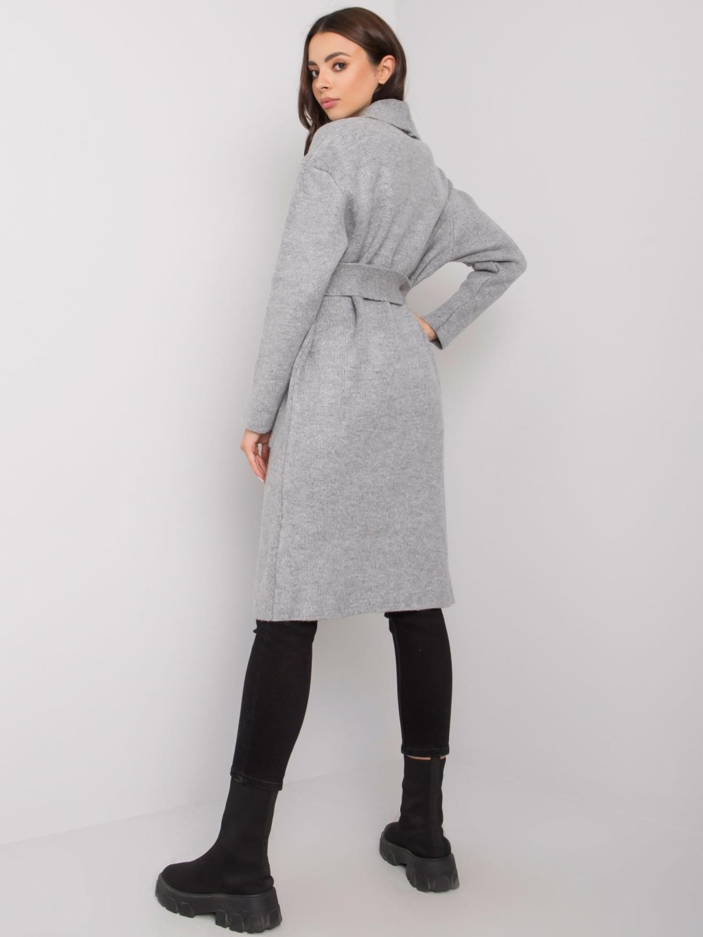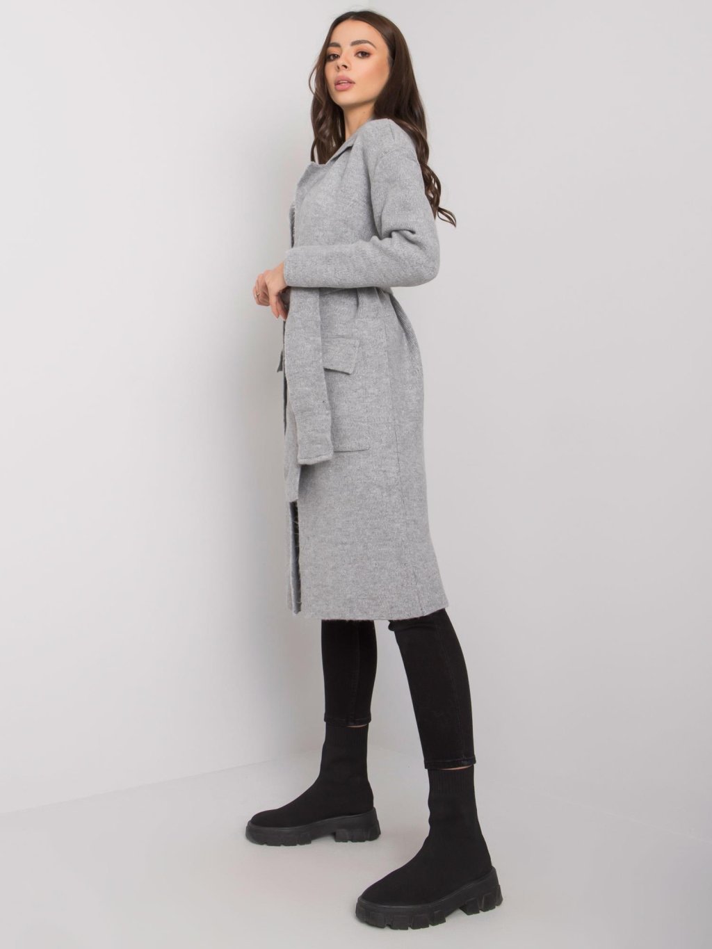 Dlhý šedý kardigan s opaskom Judith