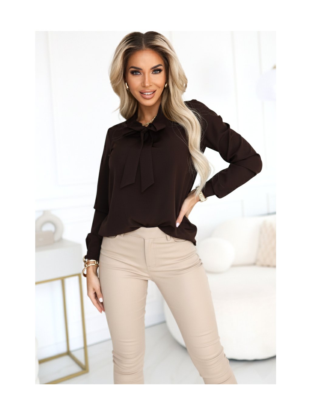 Elegantná čokoládovo hnedá blúzka VALERIO