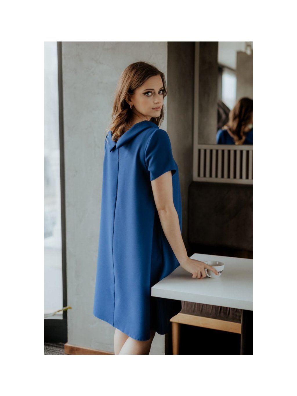 Elegantné dámske tmavo modré midi šaty s golierom
