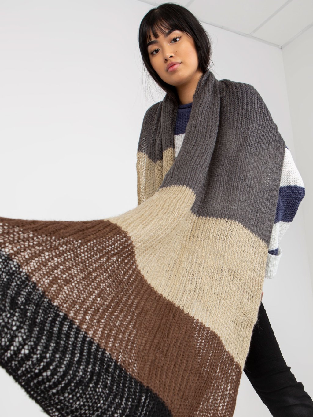 Farebný dlhý šál - sivý