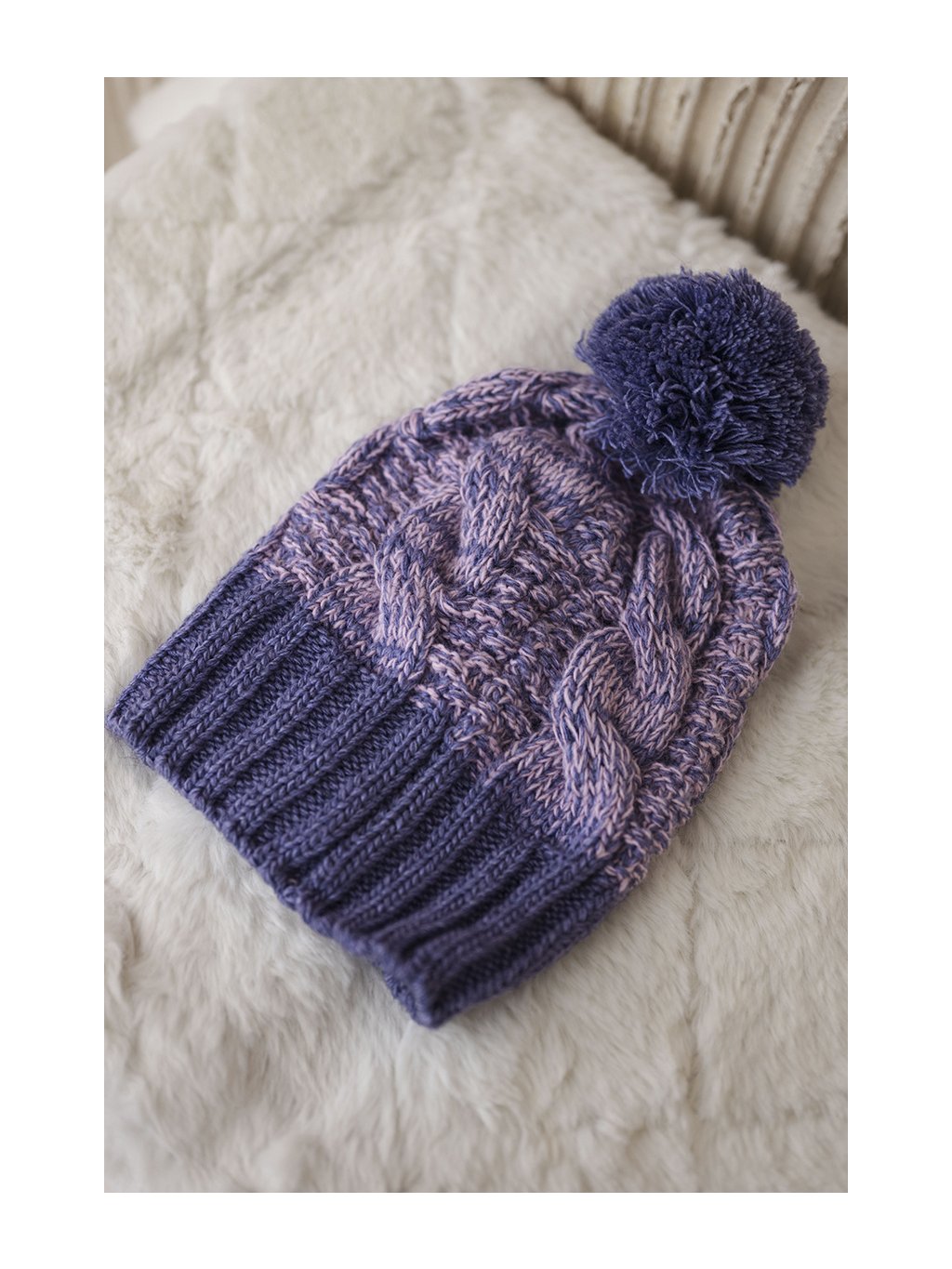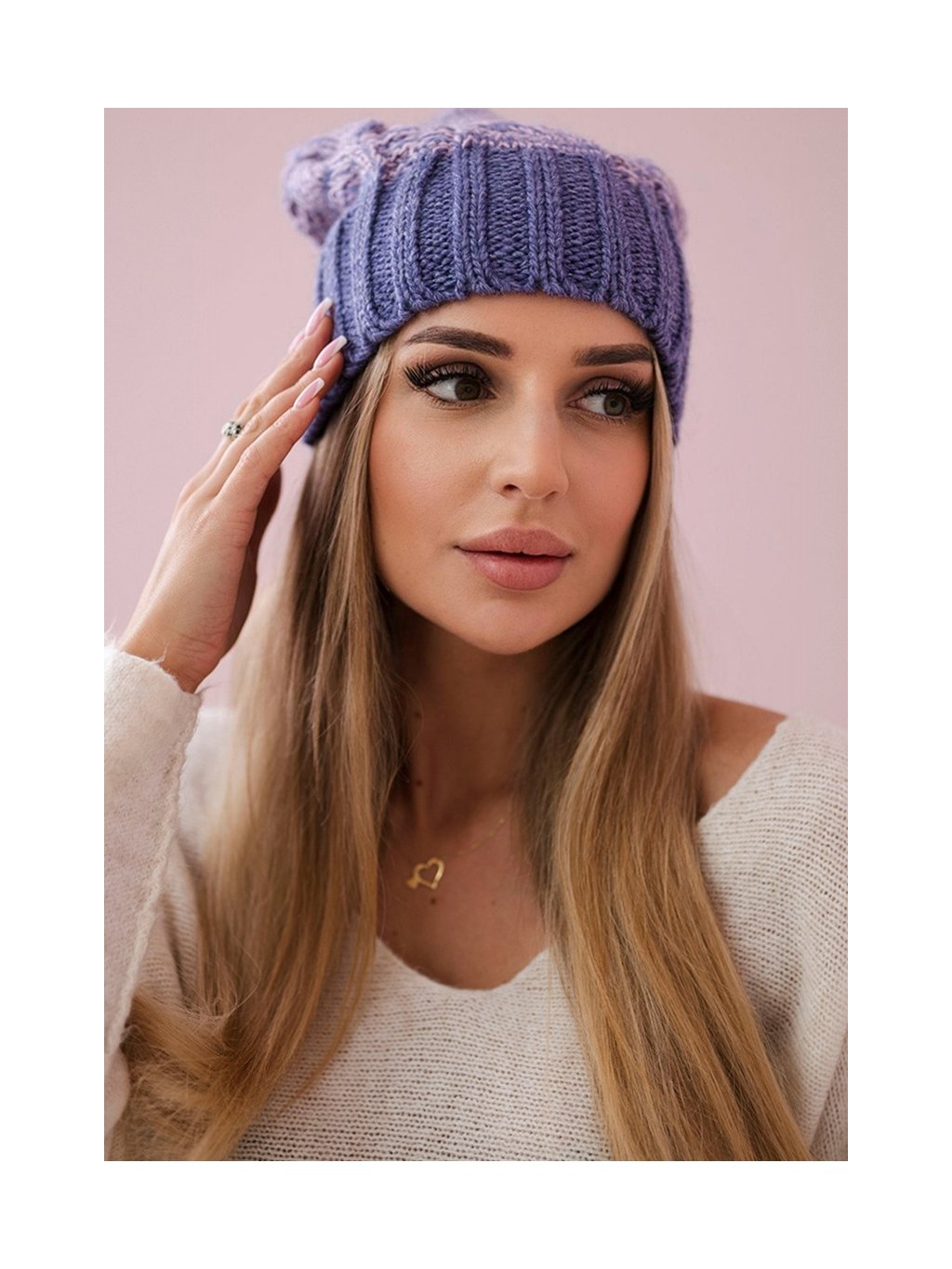 Fialová dámska zimná čiapka s brmbolcom