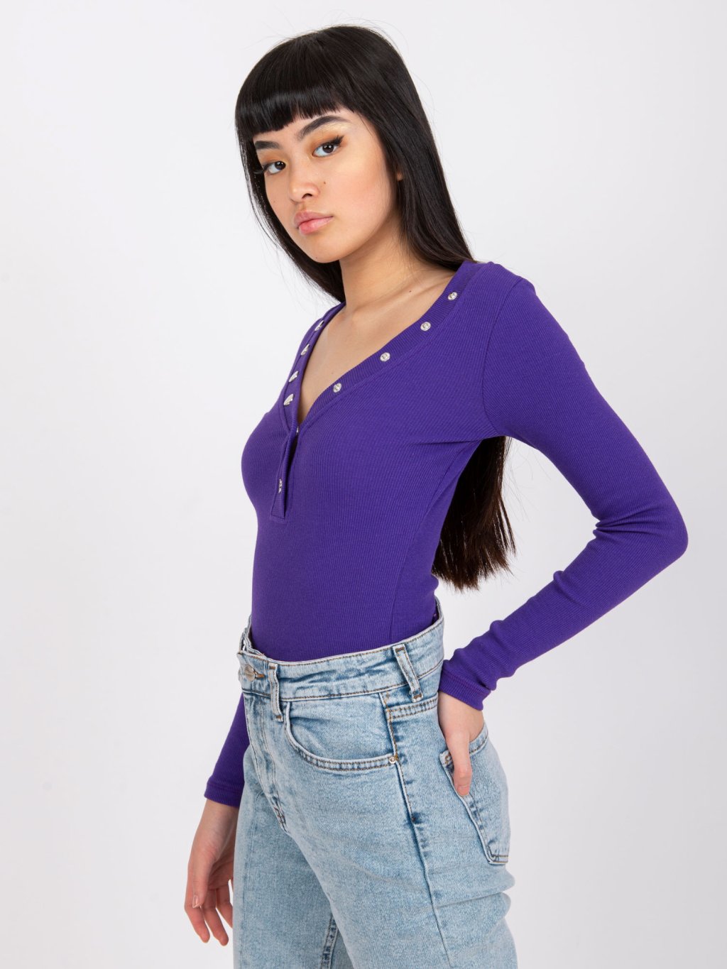Fialové tričko Tracy s ozdobným výstrihom