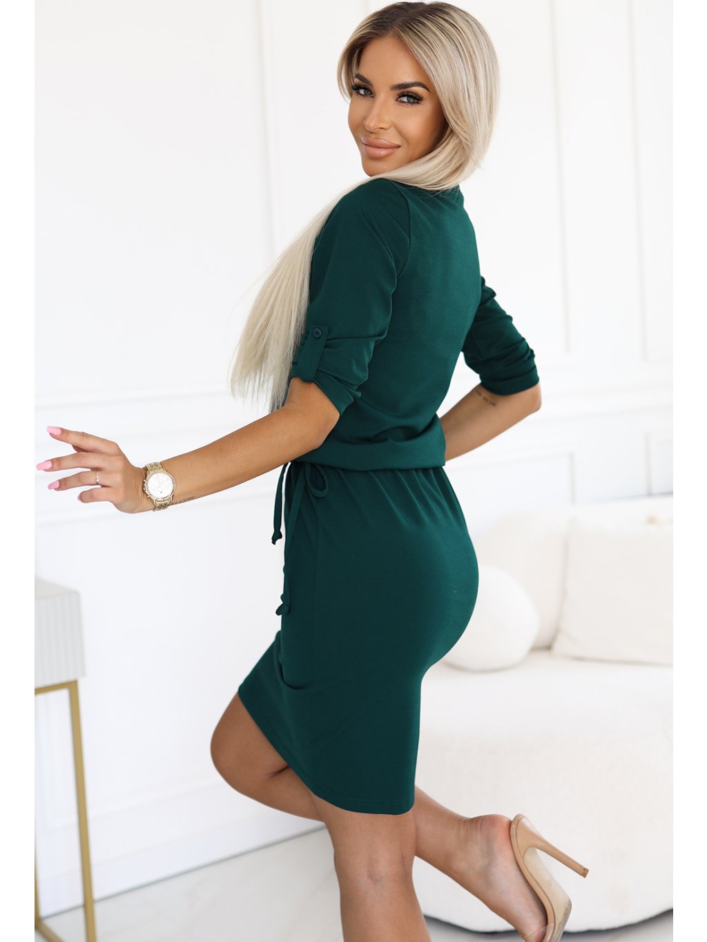 Fľašovo zelené šaty s golierom AGATA