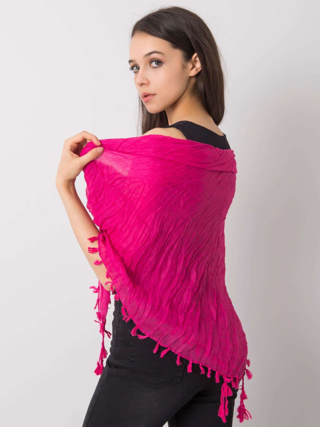 Fuchsiová šatka so strapcami