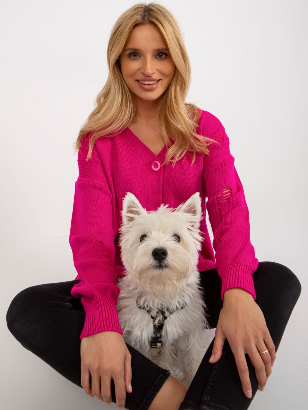 Fuchsiový kardigan s dierami