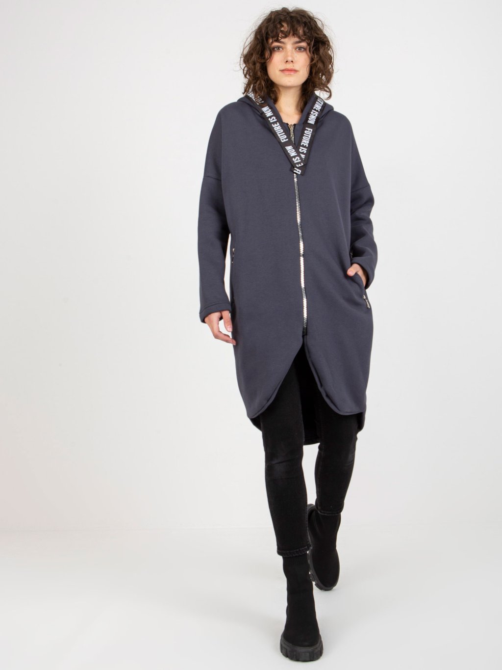 Grafitovo-sivé mikinové šaty na zips