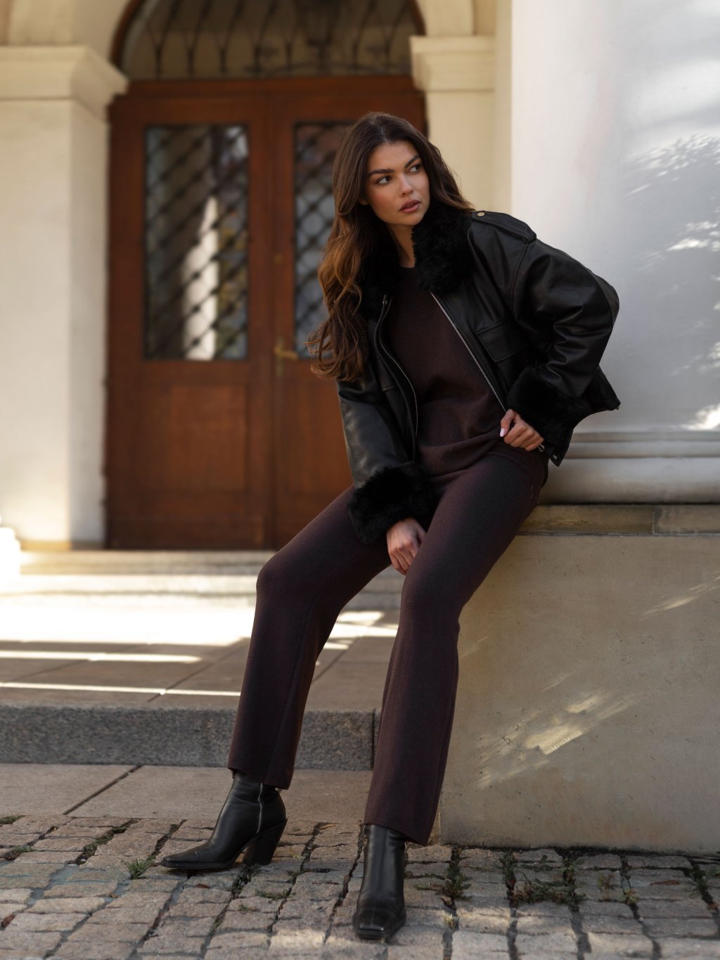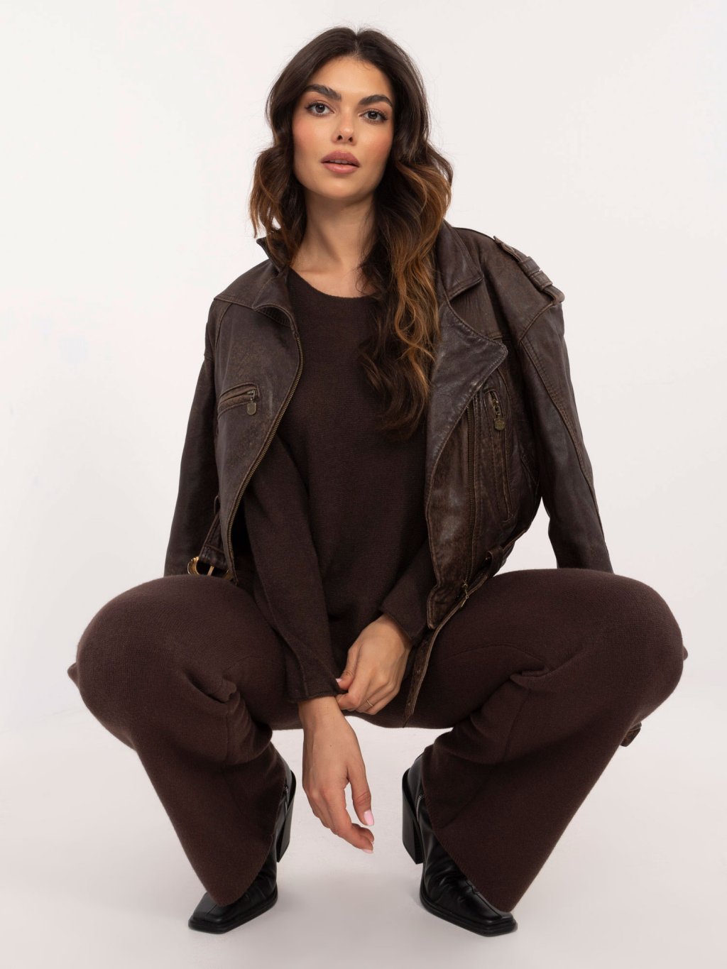 Hnedá dámska pletená súprava