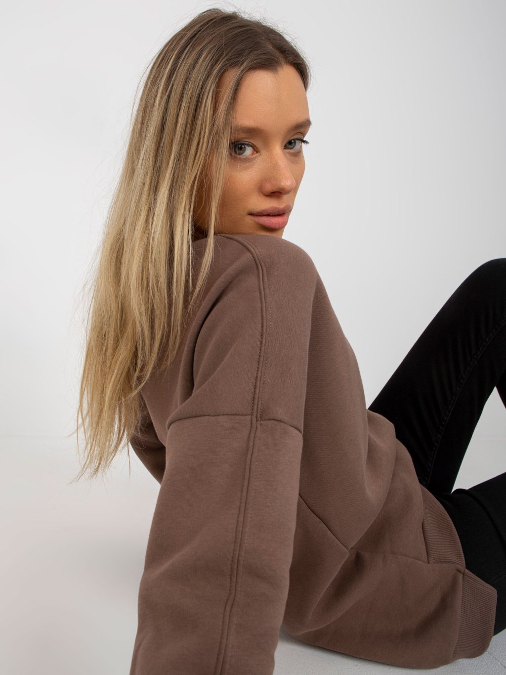 Hnedá voľná basic mikina