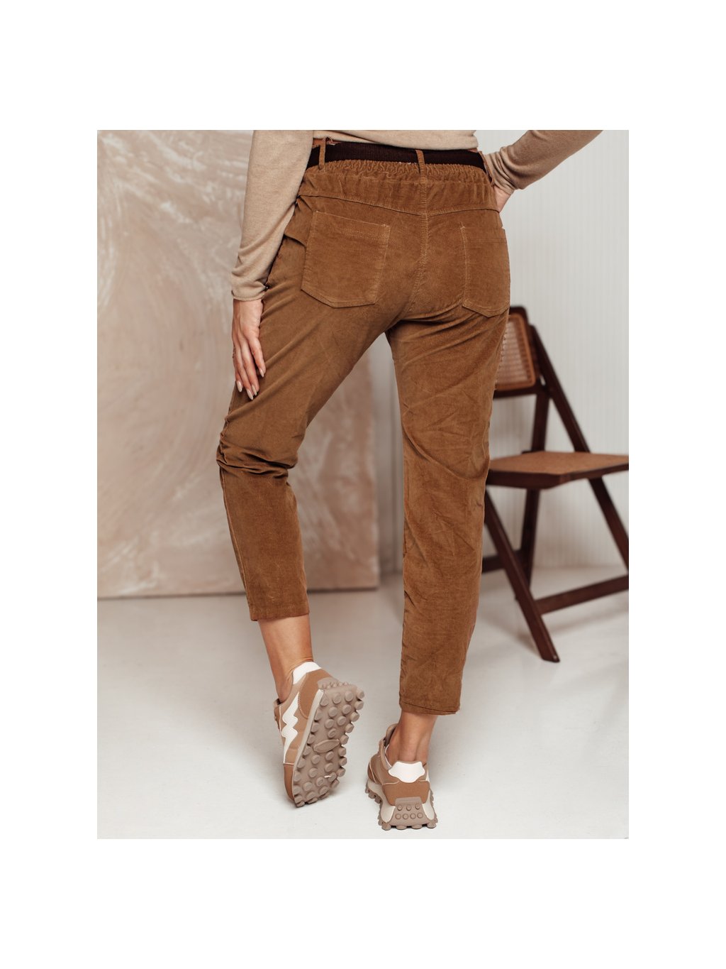 Hnedé dámske menčestrové nohavice s pásikom DANORII