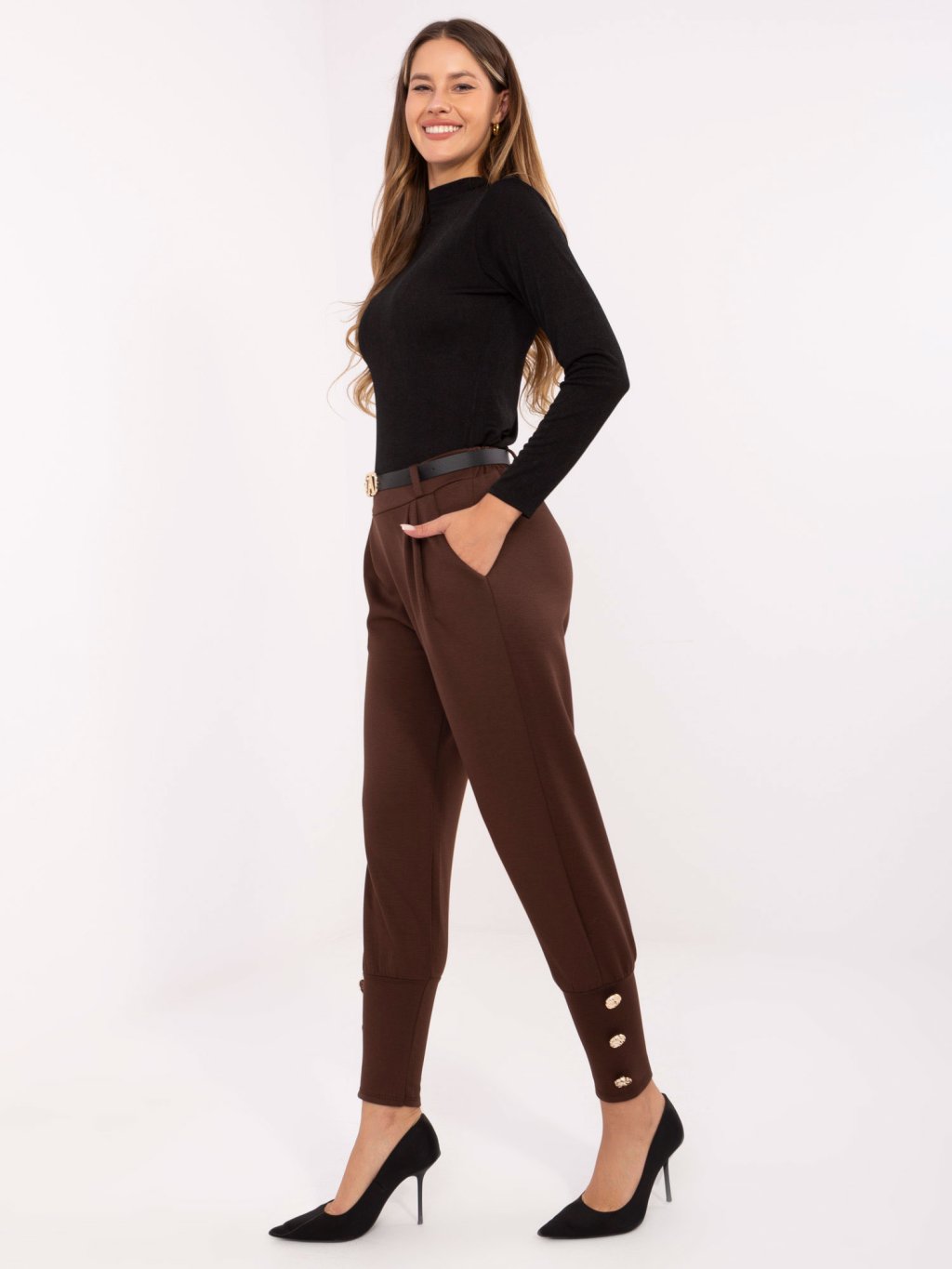 Hnedé dámske viskózové tepláky s opaskom