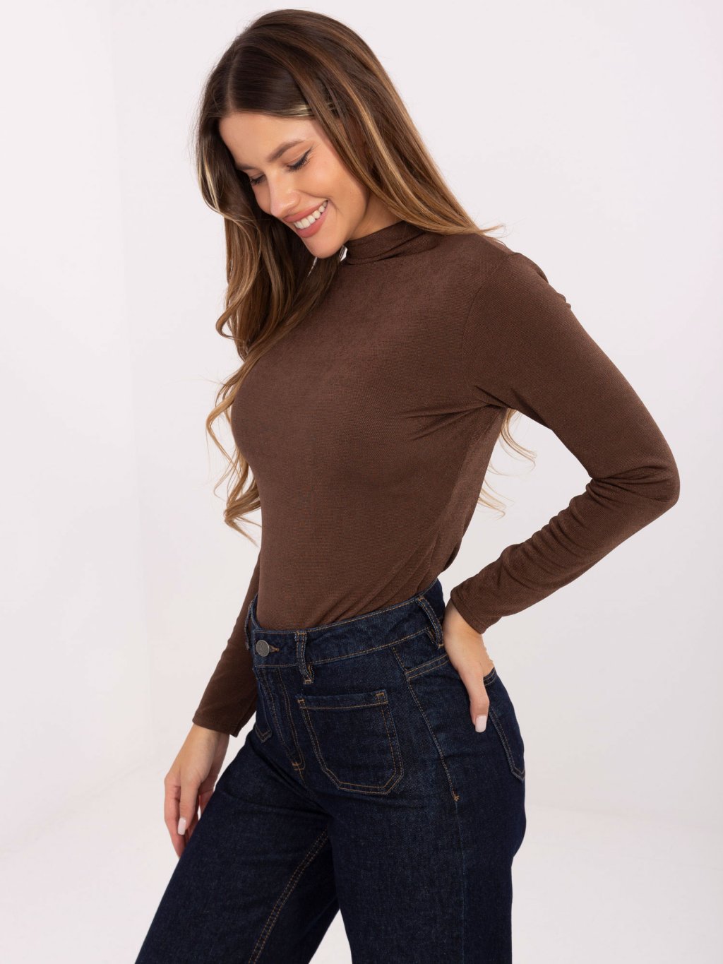 Hnedý dámsky viskózový rolák s dlhým rukávom