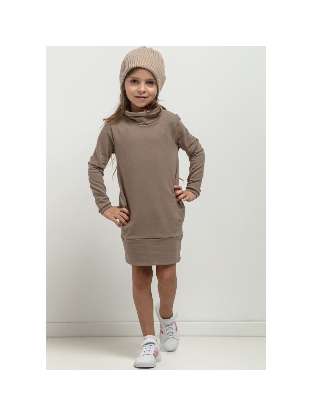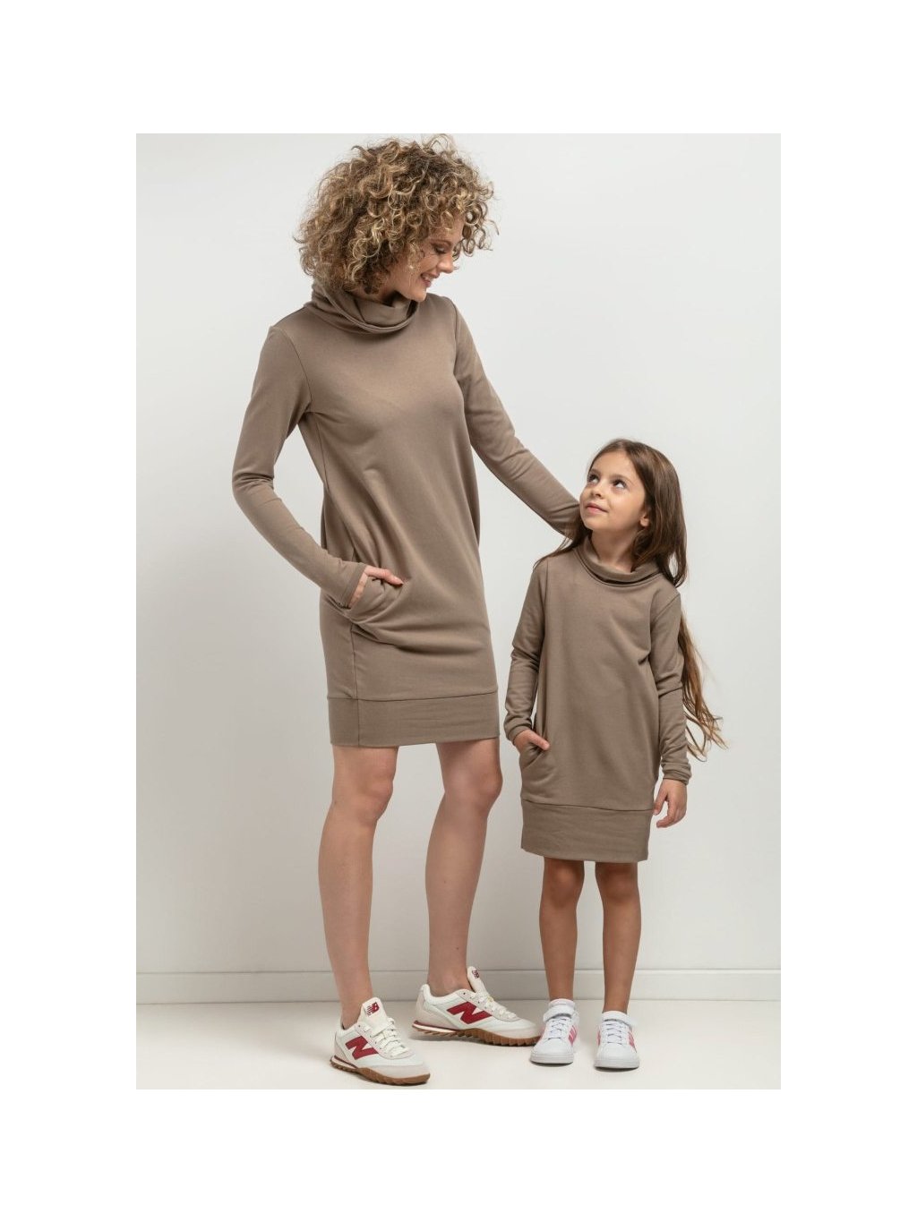 Hnedé dievčenské mikinové šaty mama a dcéra s rolákom