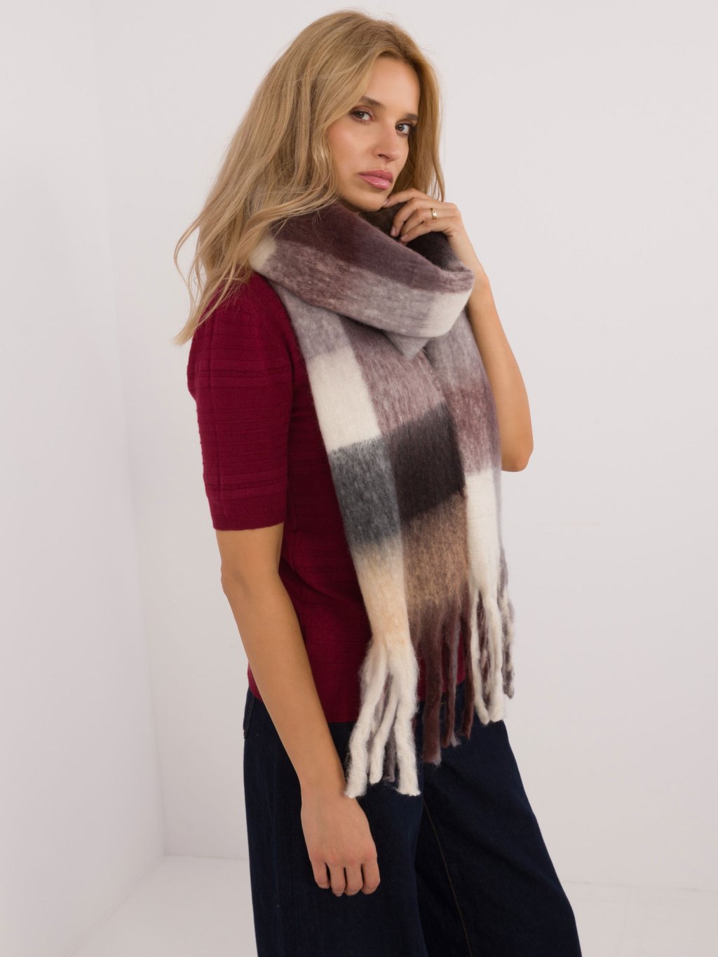 Hnedo-béžový dámsky károvaný šál so strapcami