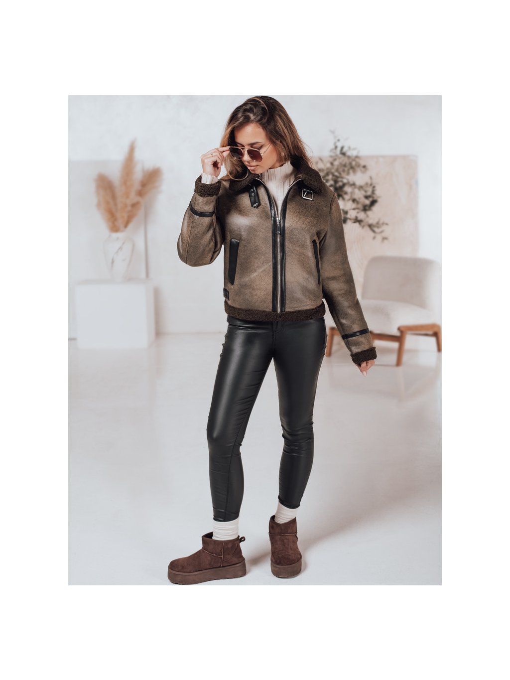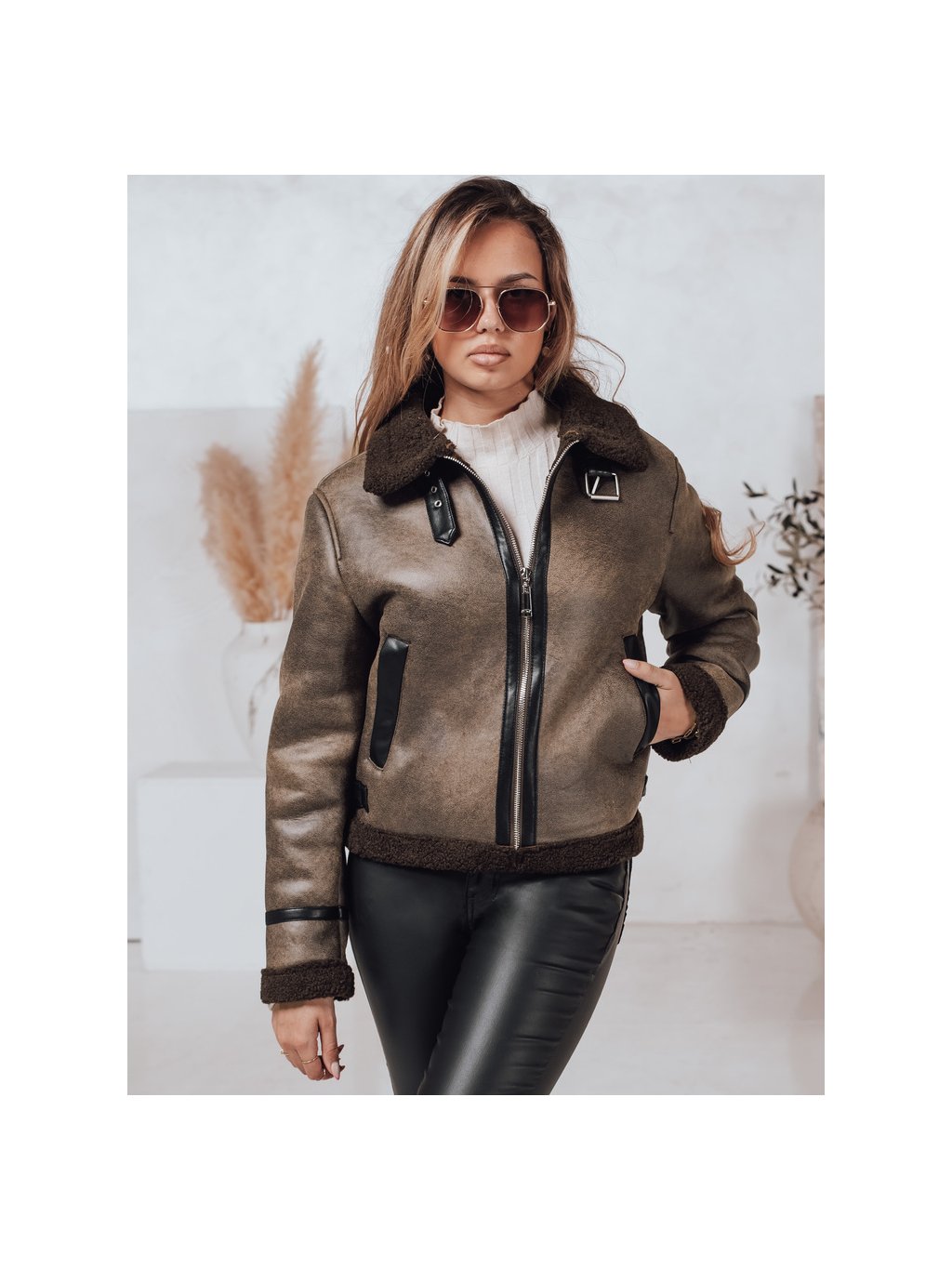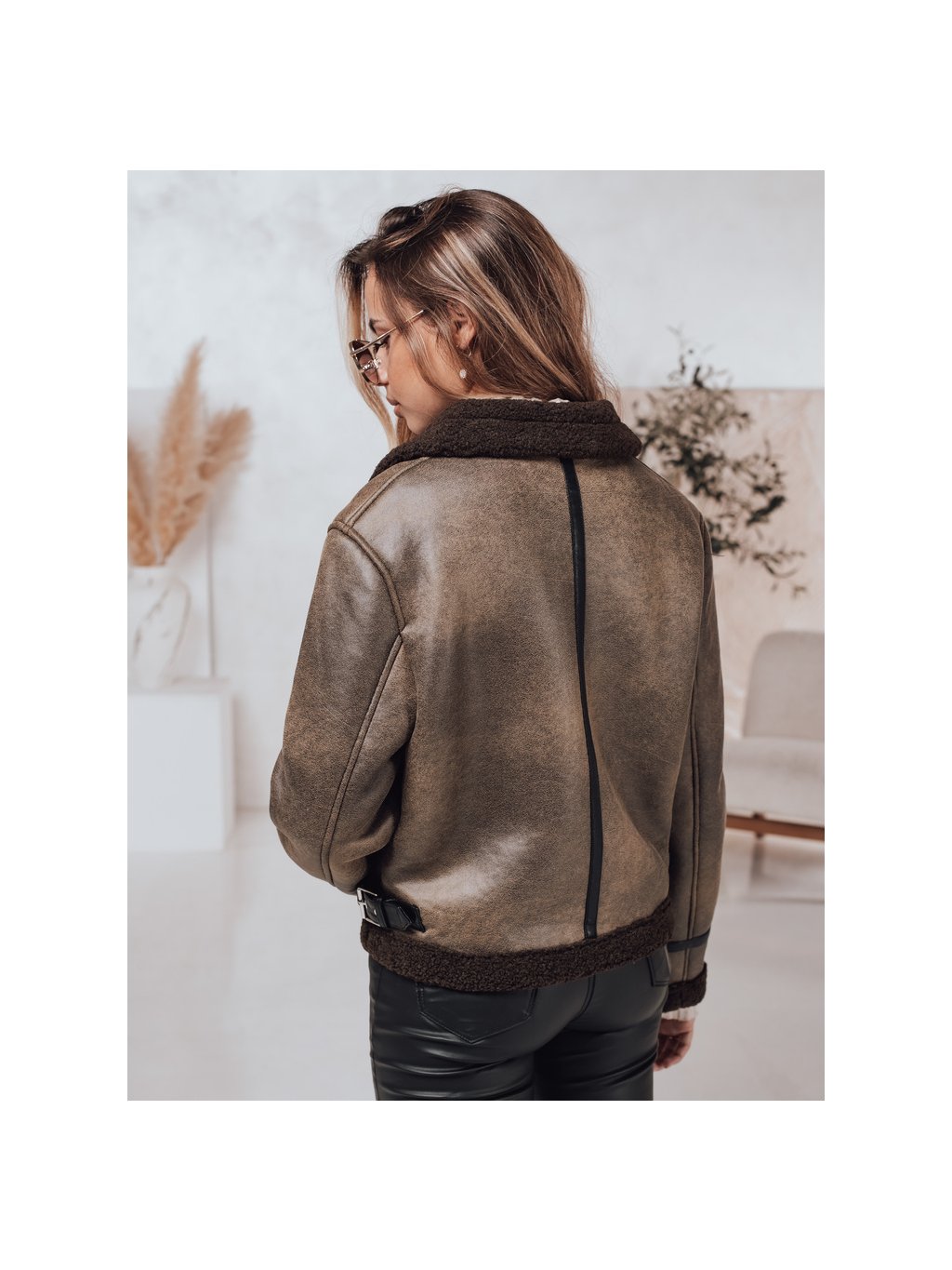 Hnedý dámsky zateplený semišový krátky kabátik KASAMIRA