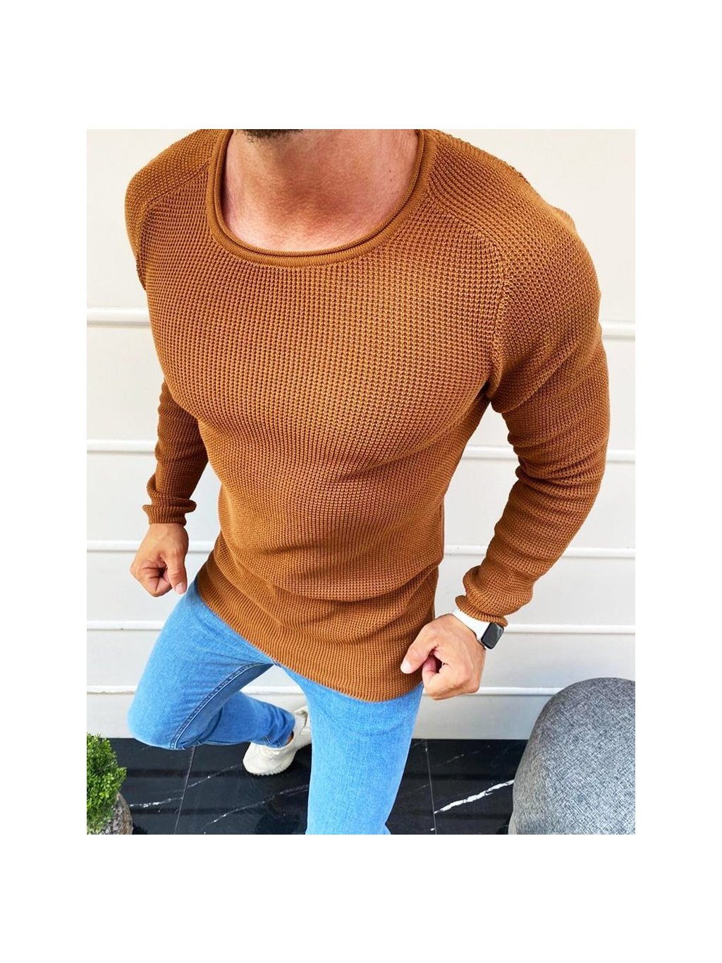 Karamelový klasický pánsky sveter