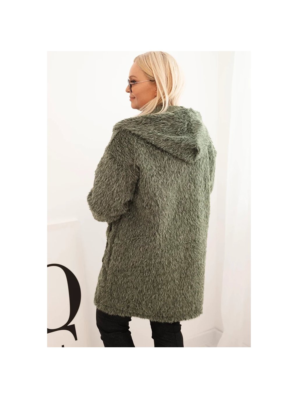 Khaki dámsky viskózový Plus Size kabát na zips s kapucňou