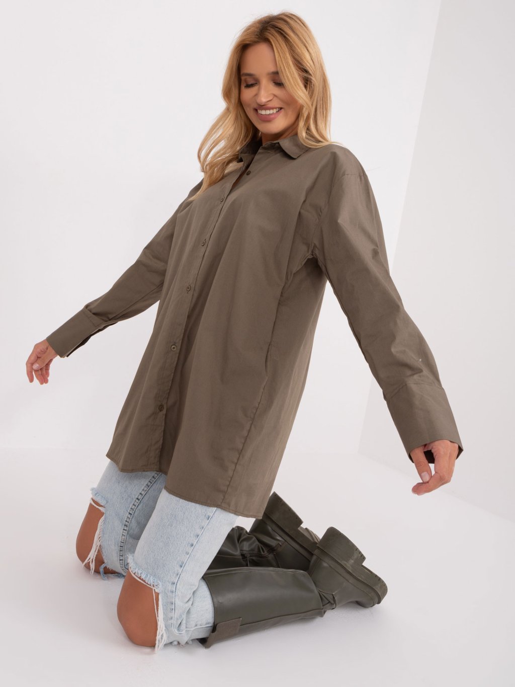 Khaki predĺžená košeľa