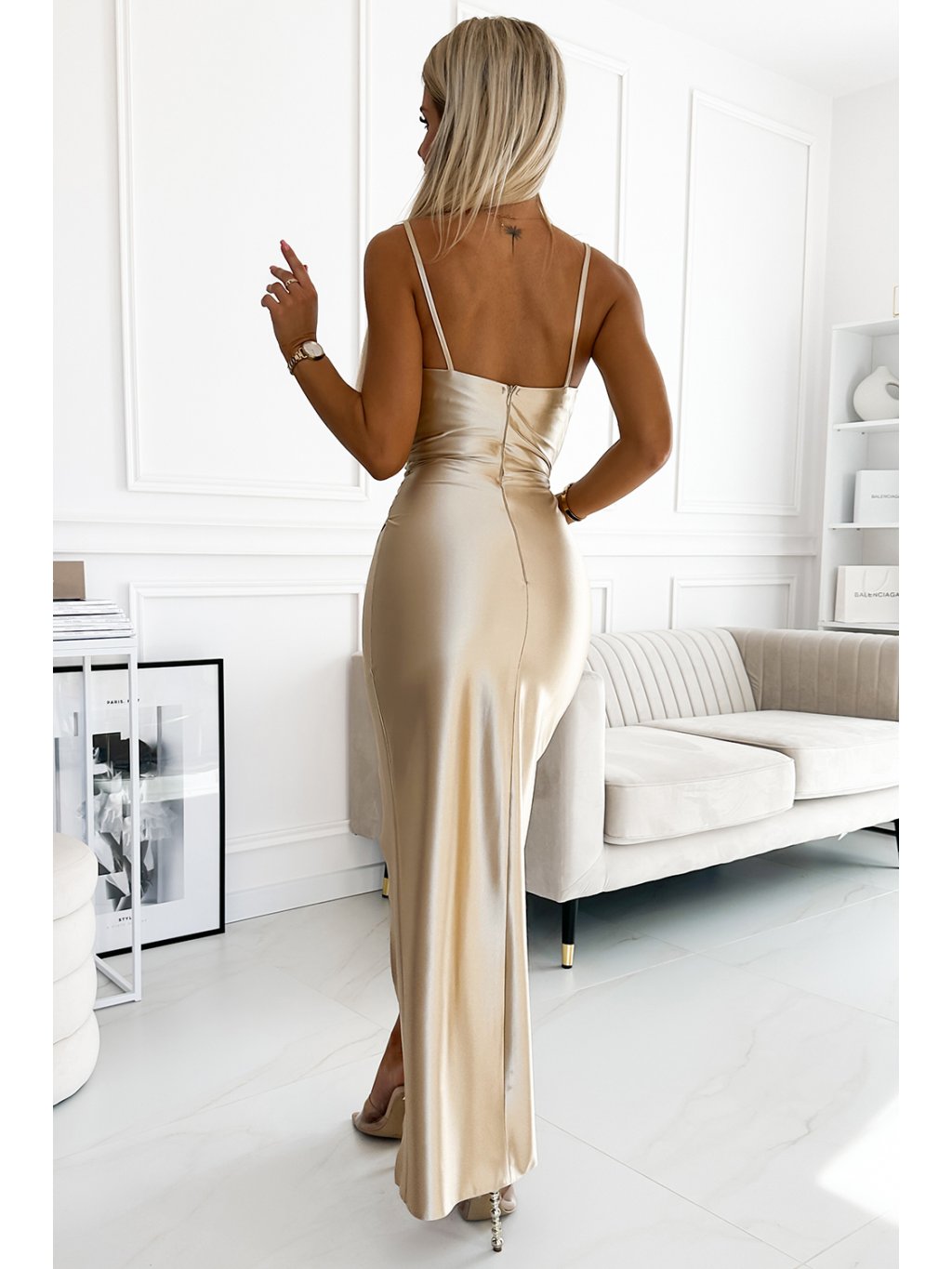 Saténové dlhé šaty s rozparkom