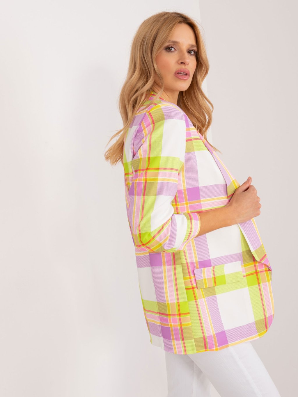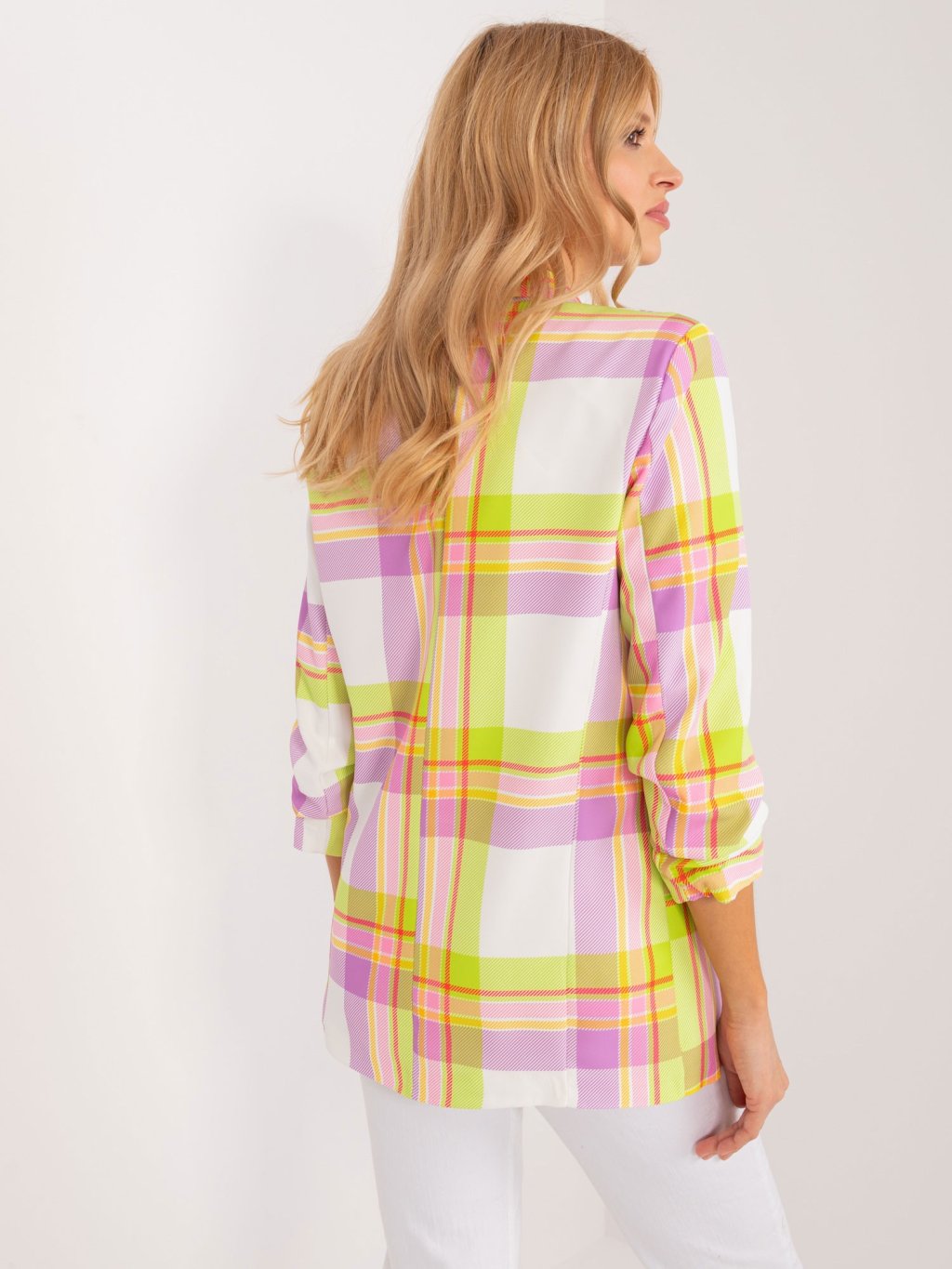 Limetkovo-fialové kárované sako