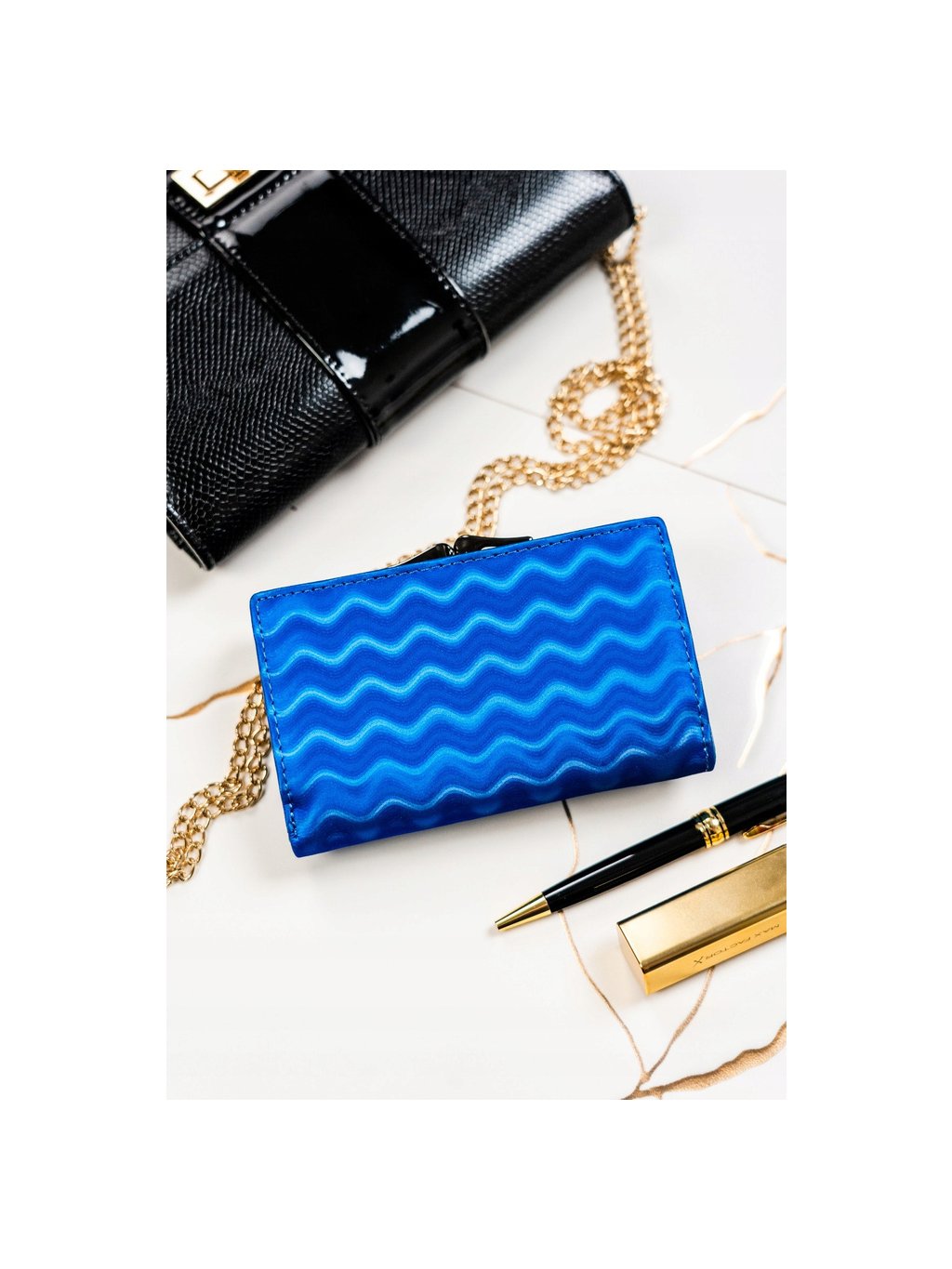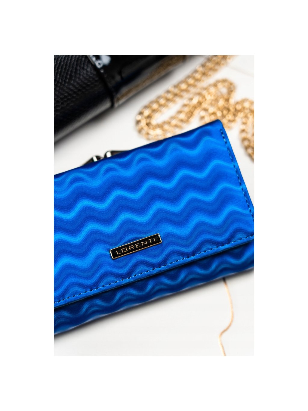 Lorenti Modrá stredná kožená peňaženka s vlnkovým vzorom S268