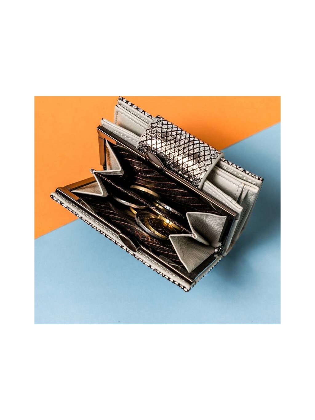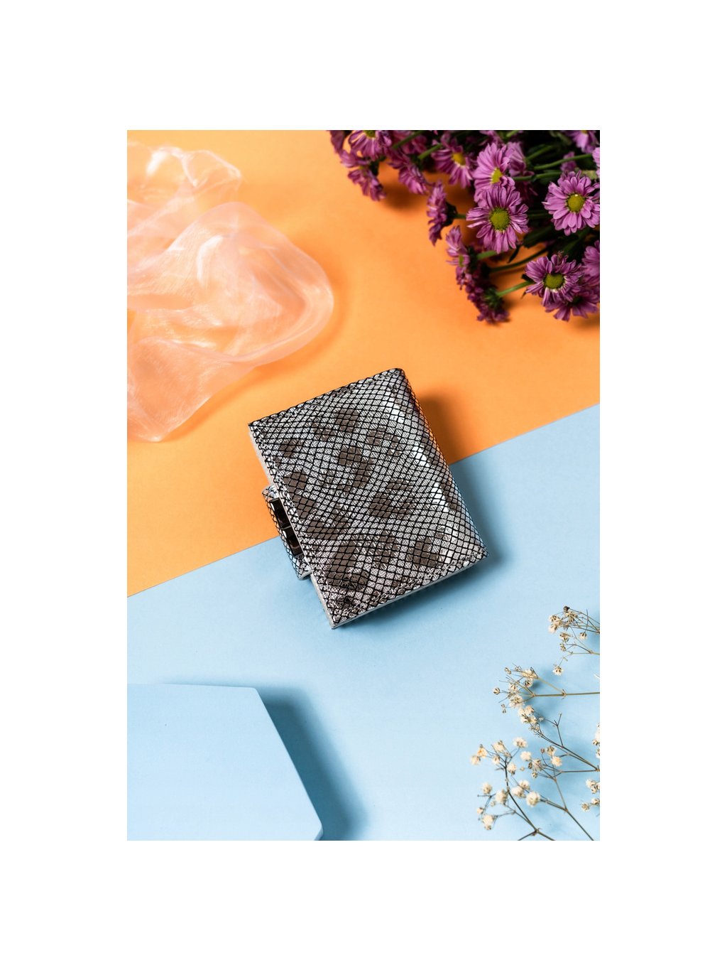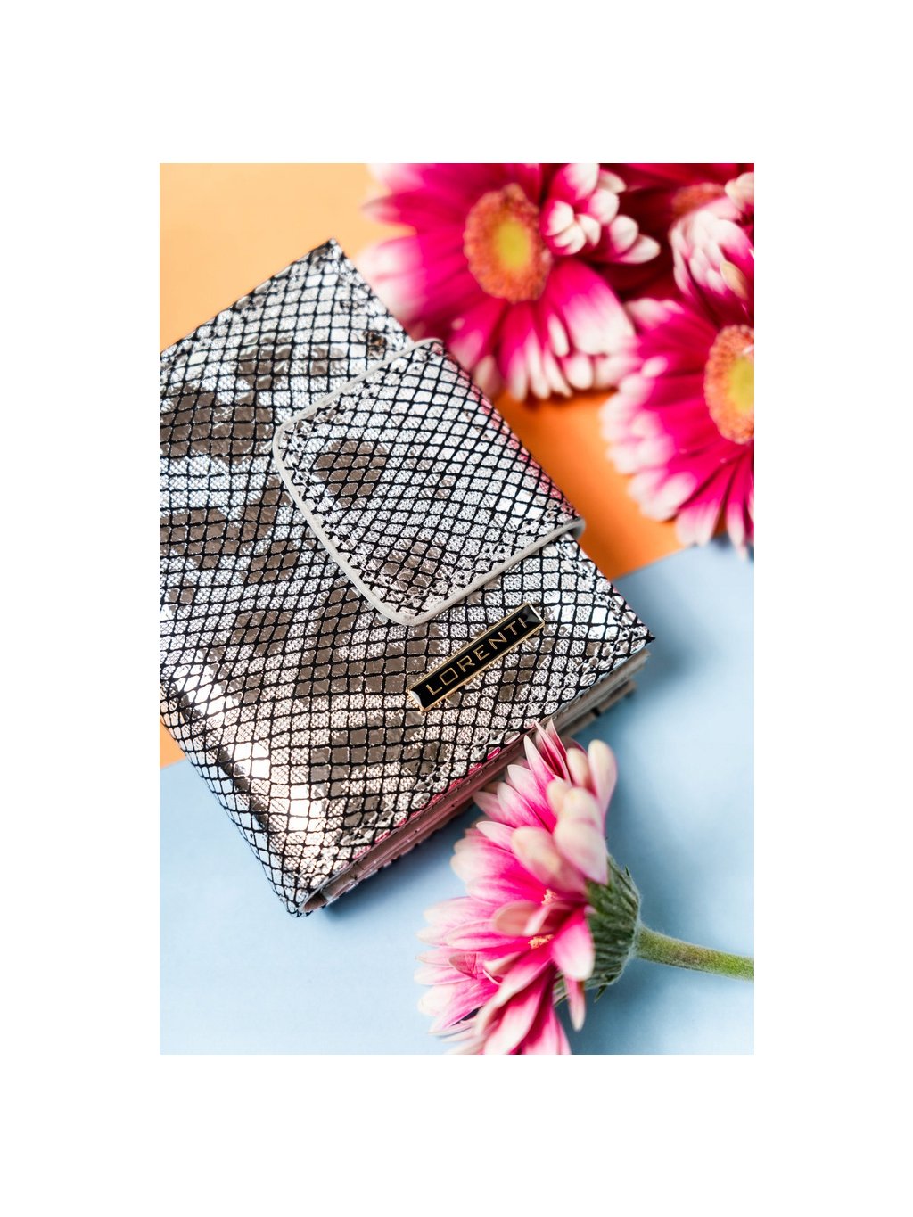 Lorenti Strieborná malá kožená peňaženka s čiernymi vzormi S289