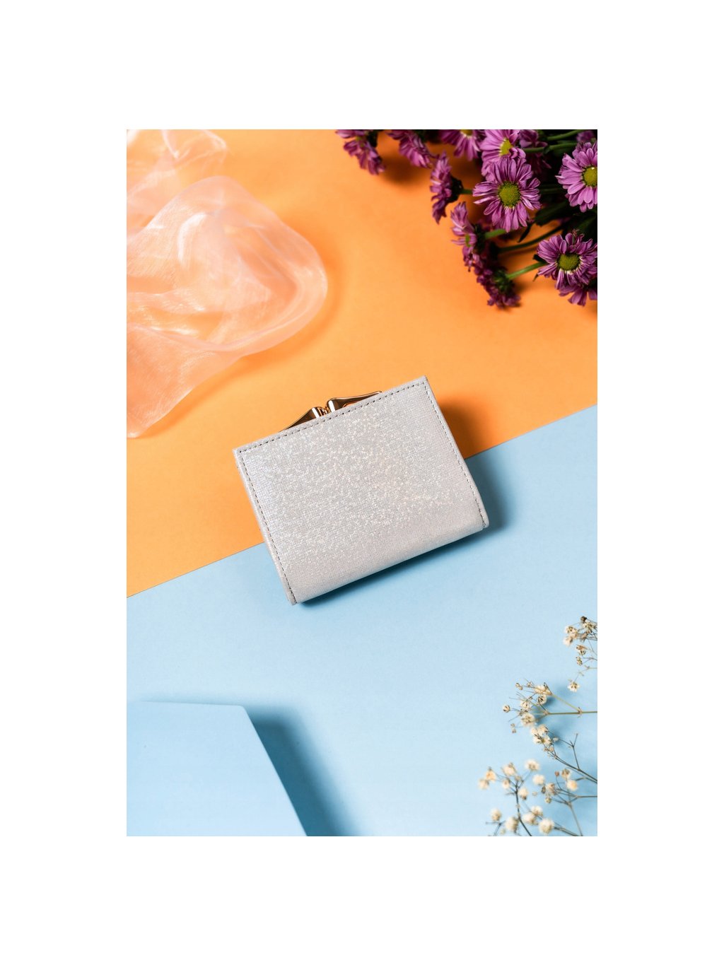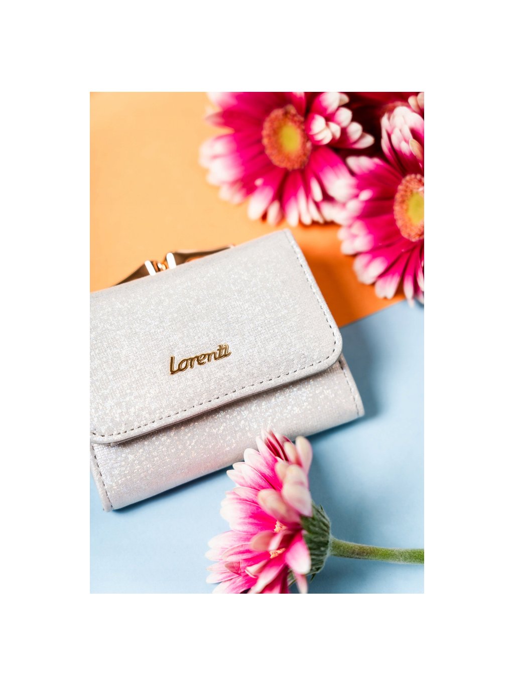 Lorenti Strieborná malá peňaženka s trblietavou textúrou S295