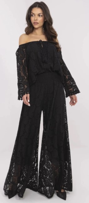 - Čierny krajkový komplet s odhalenými ramenami, čierne lodičky