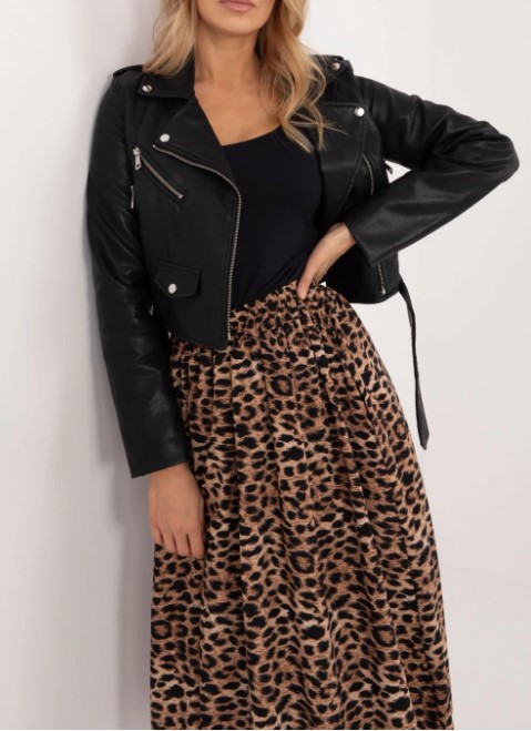 Tip na outfit: Leopardie midi šaty skombinujte s čiernymi čižmami nad kolená a krátkym čiernym sakom.