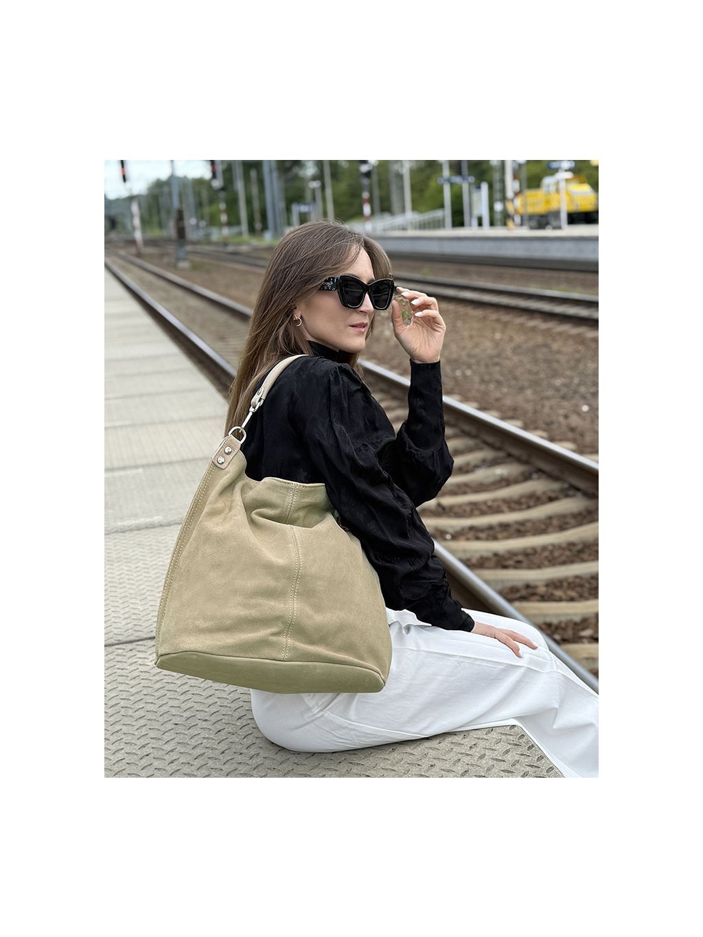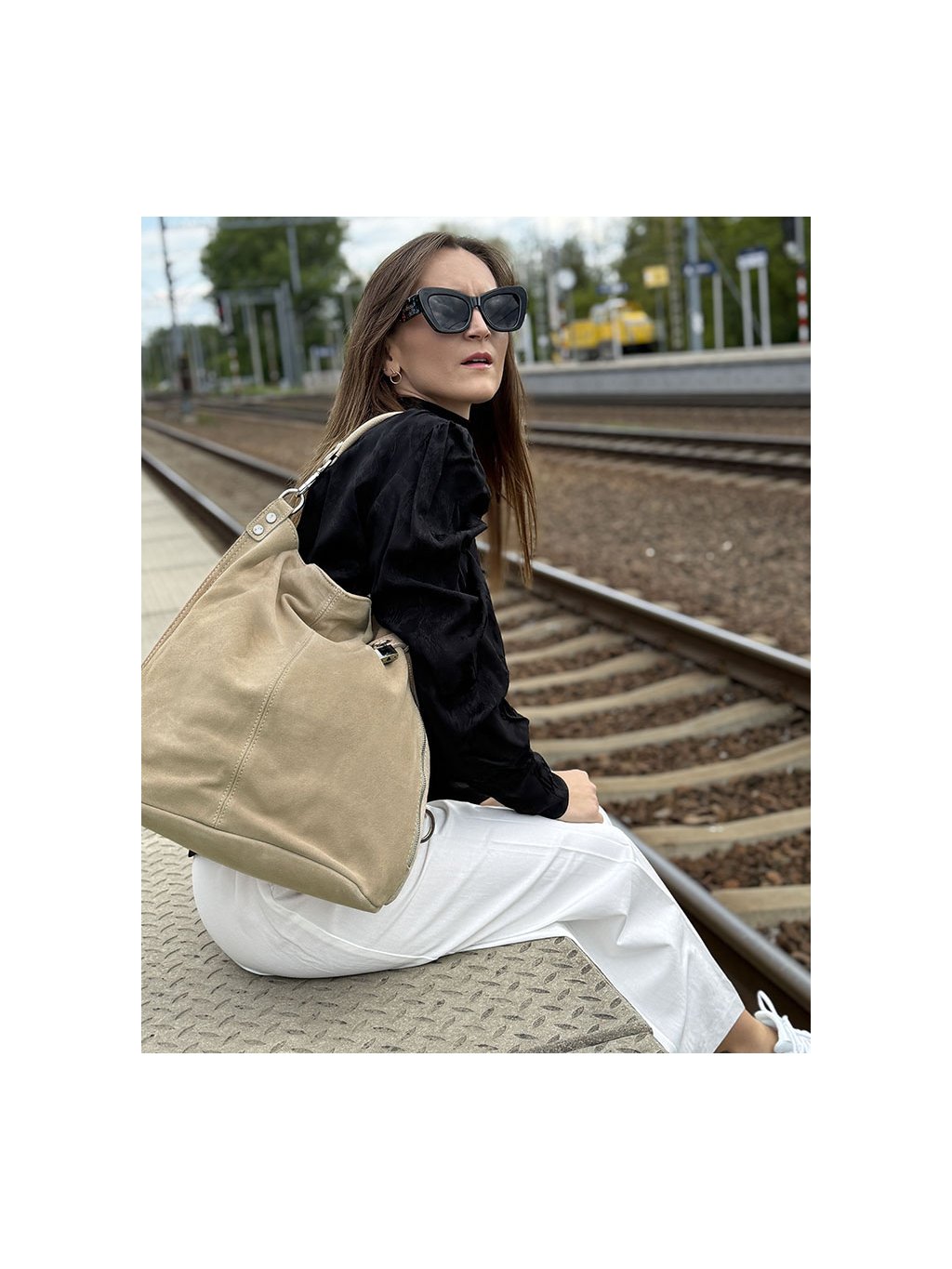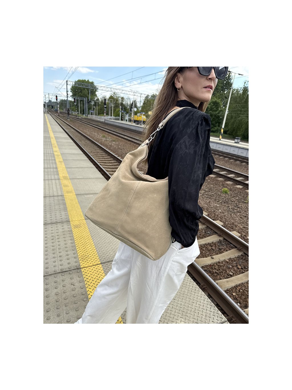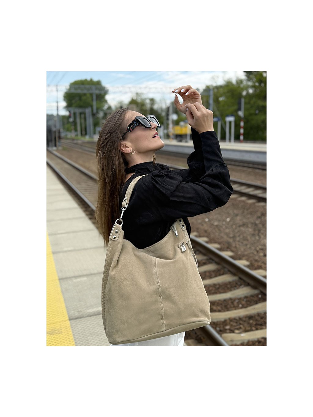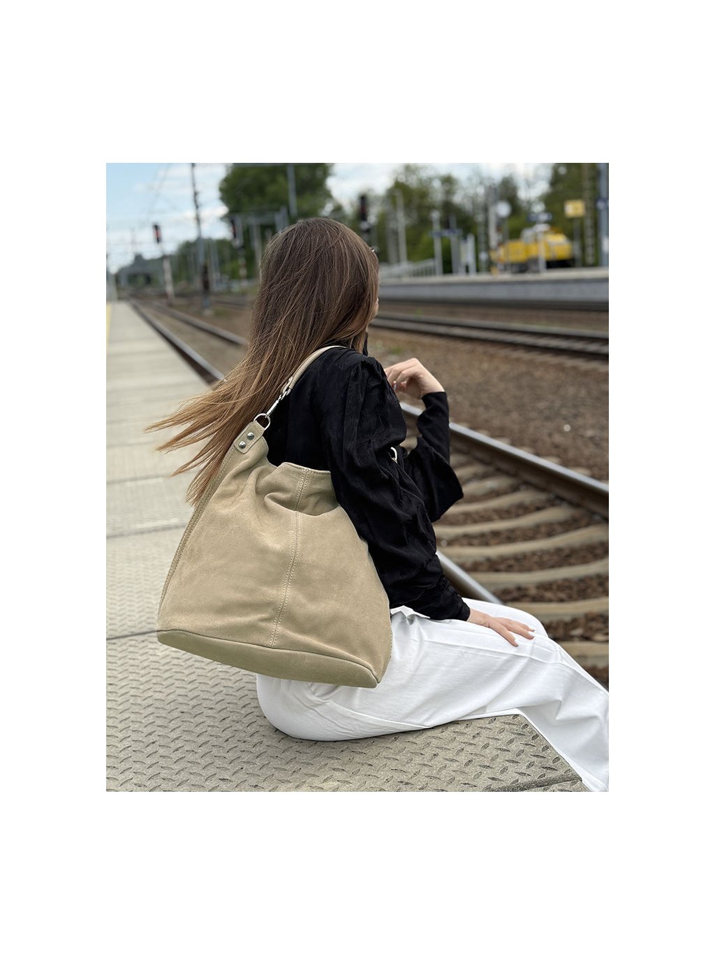 MARCO MAZZINI Béžová priestranná kabelka z nubuku