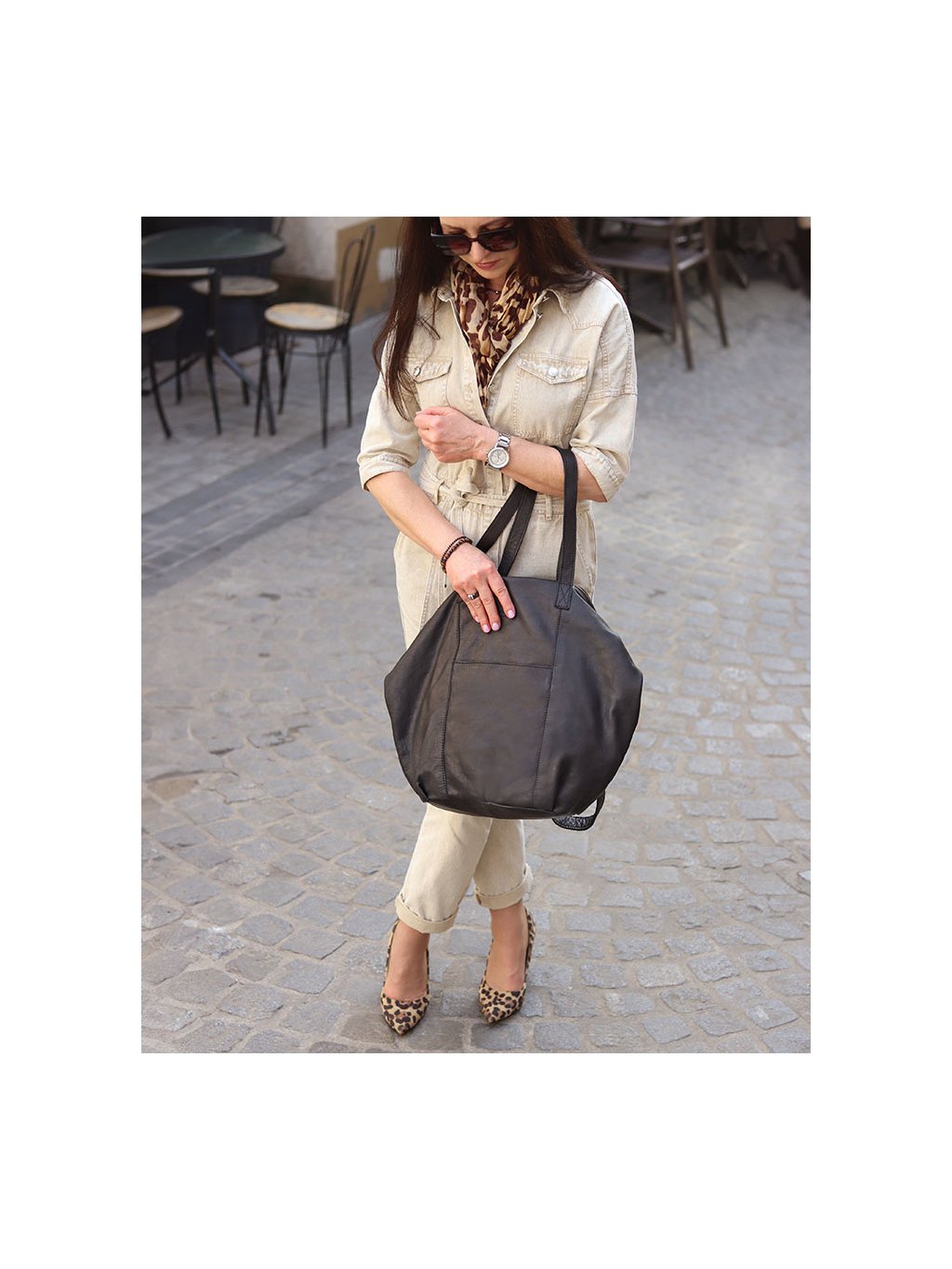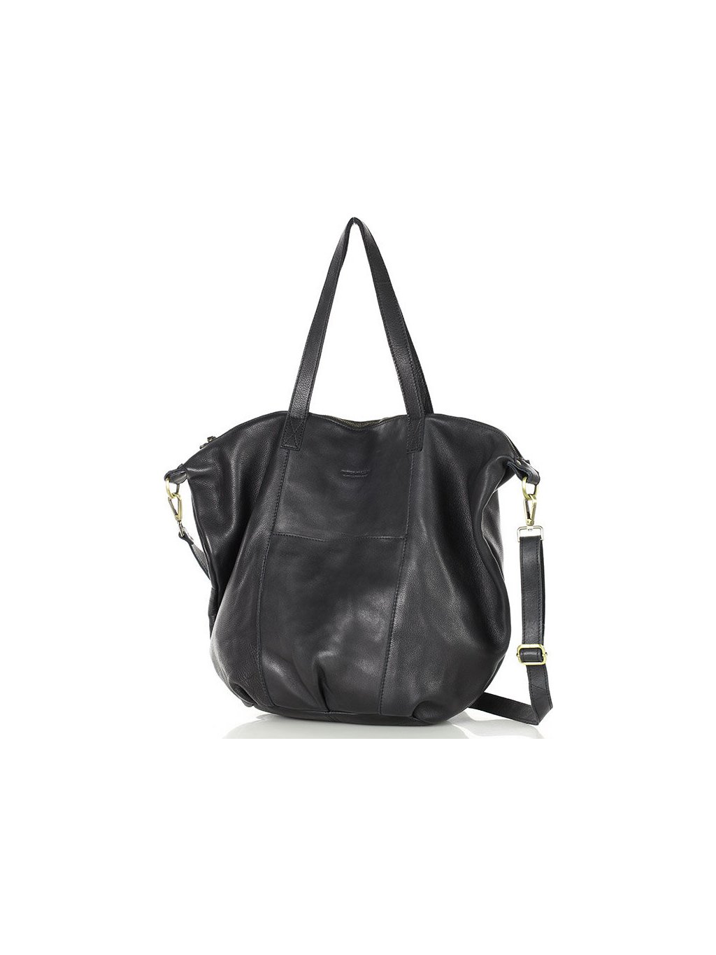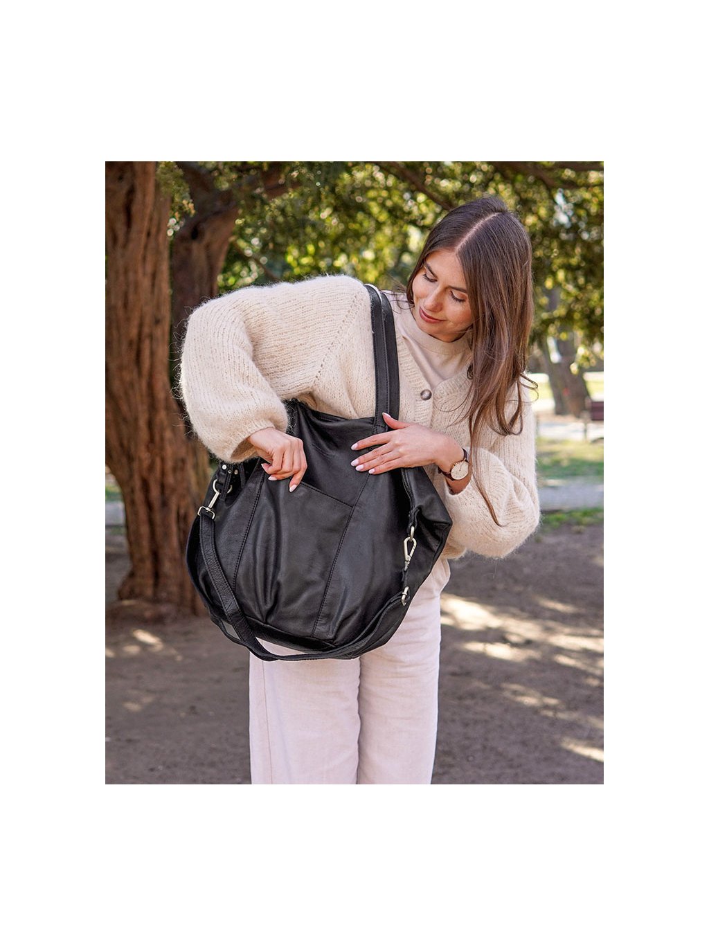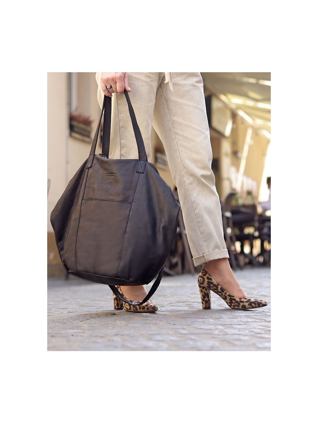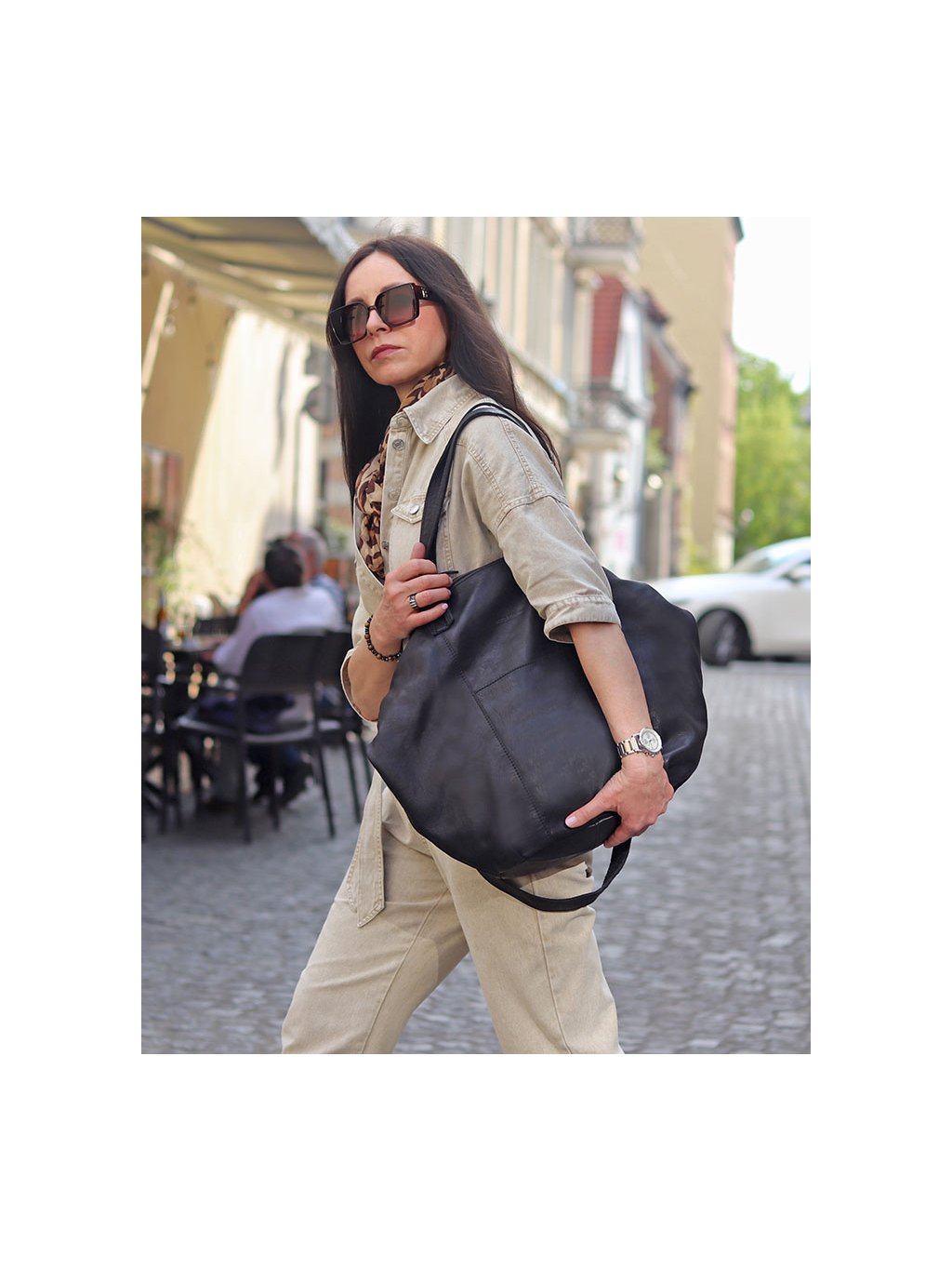 MARCO MAZZINI Čierna kožená shopper bag s pletenou vsadkou