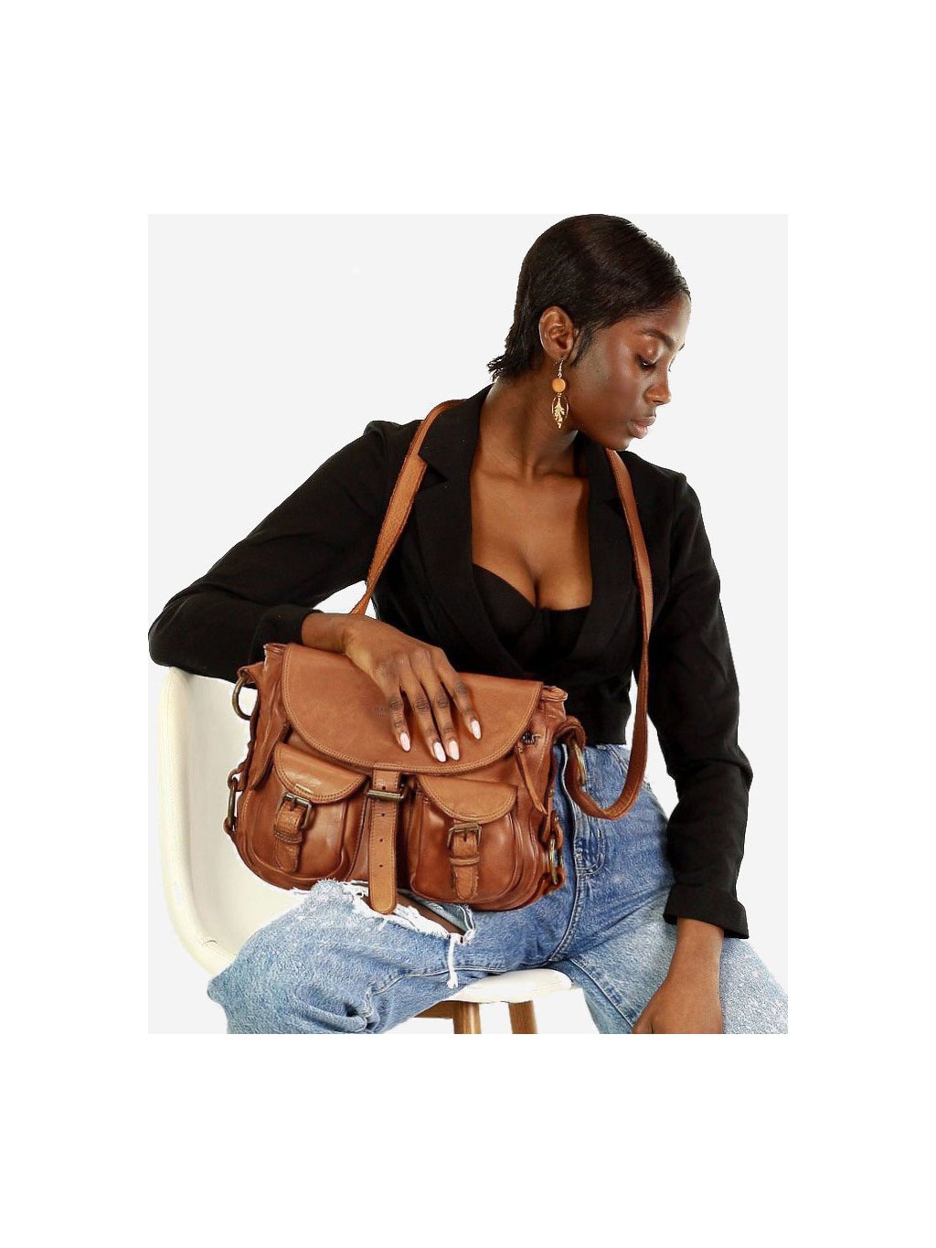 MARCO MAZZINI Dámska kožená taška - camel