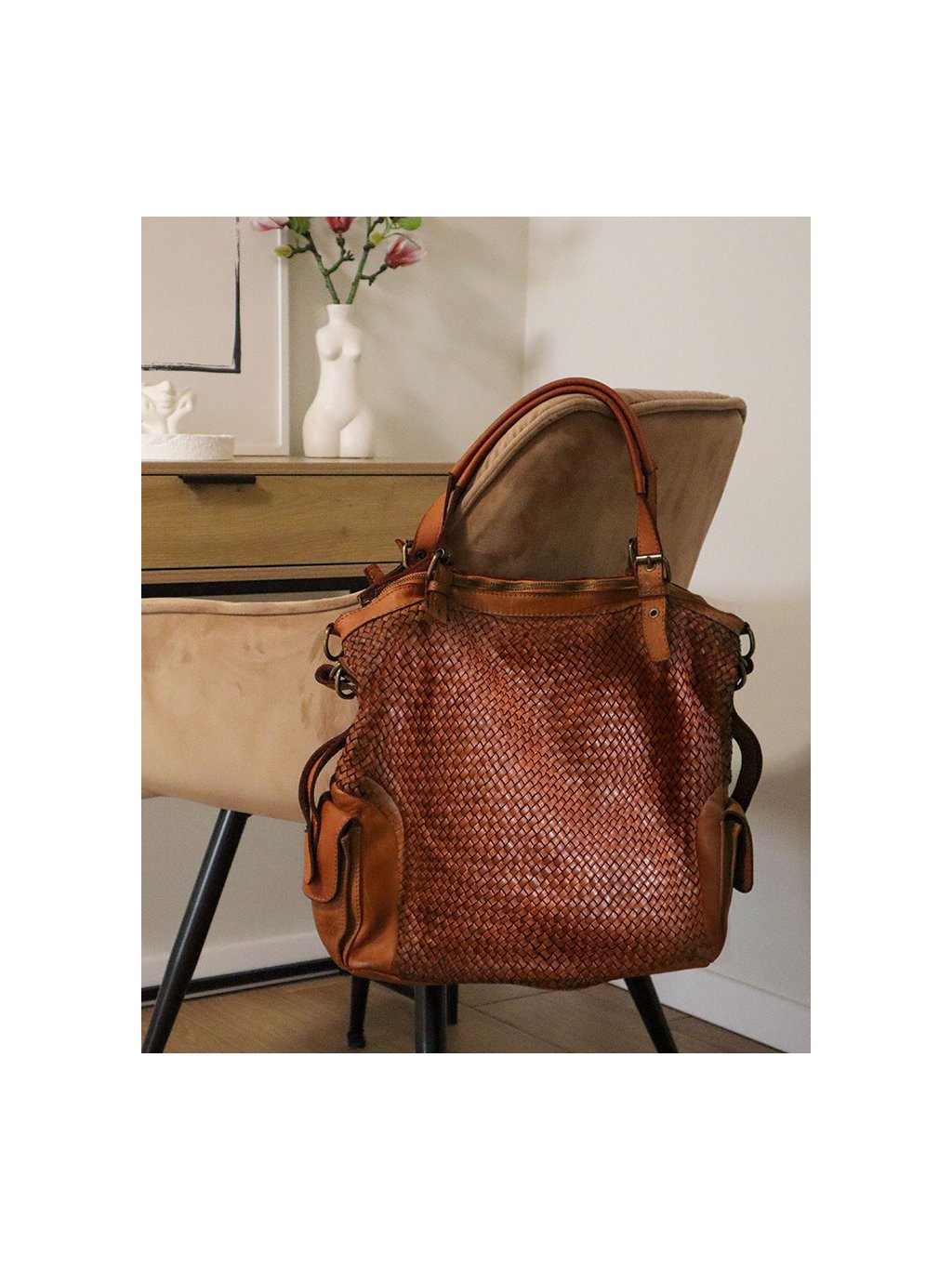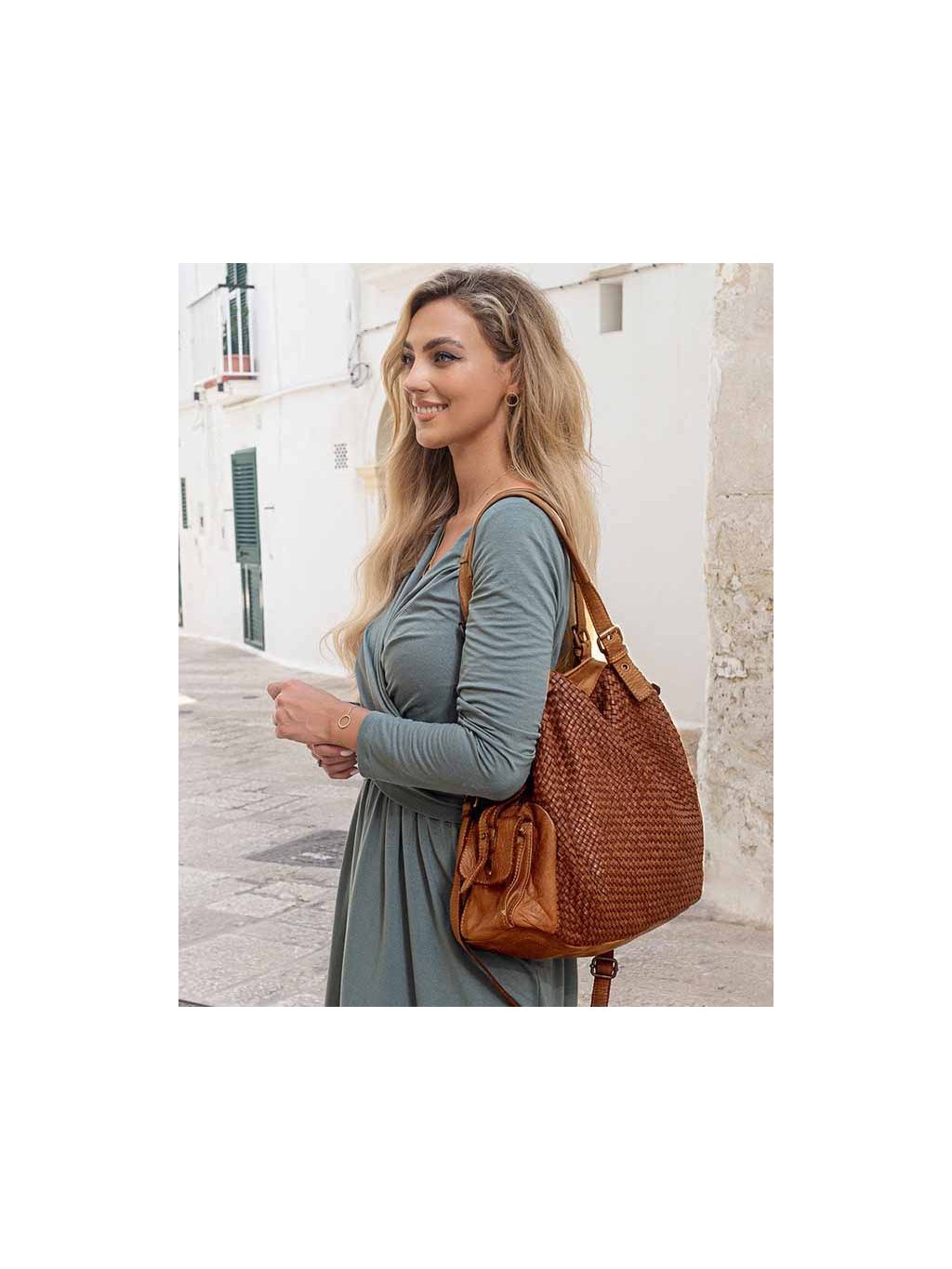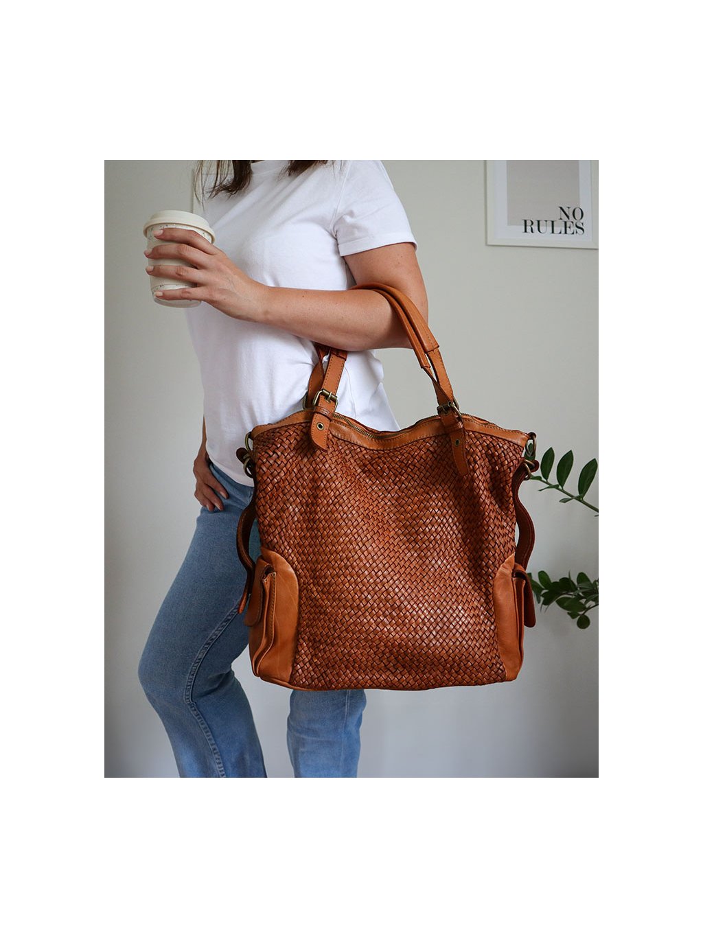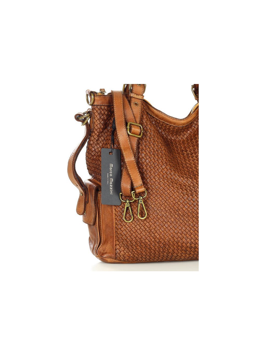 MARCO MAZZINI hnedá kožená shopper kabelka s pleteným vzorom