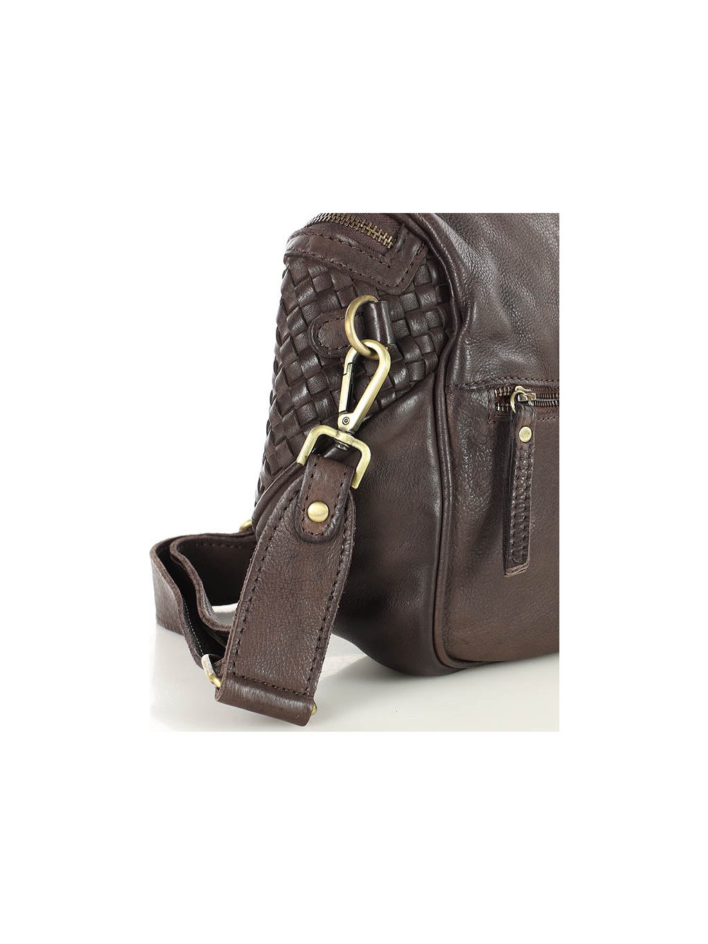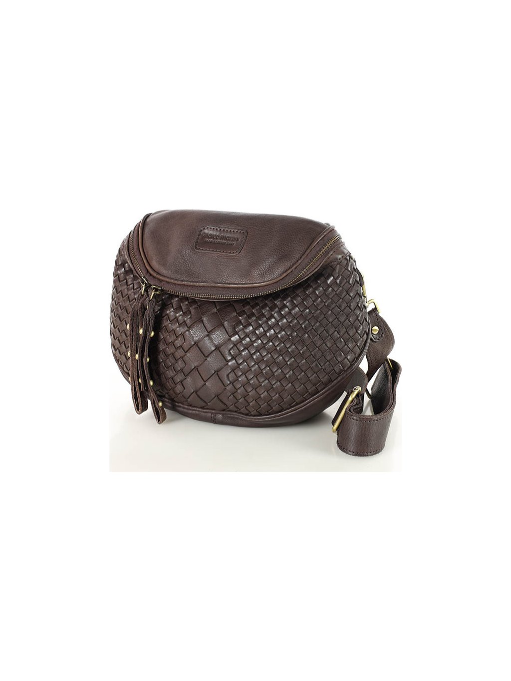 MARCO MAZZINI Kožená pletená crossbody - tmavohnedá